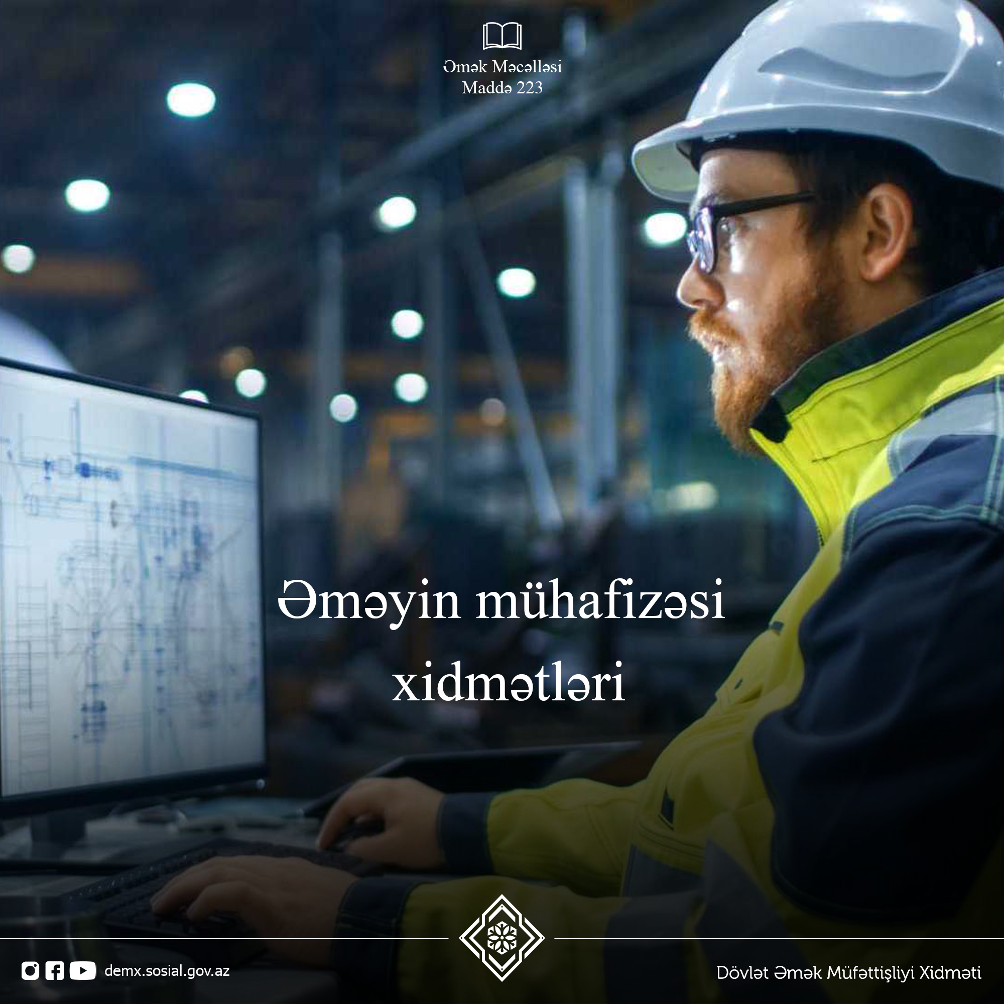 Azərbaycan Respublikası Əmək Məcəlləsinin 223-cü maddəsinə əsasən əməyin mühafizəsi xidmətləri aşağıdakı kimi tənzimlənir: