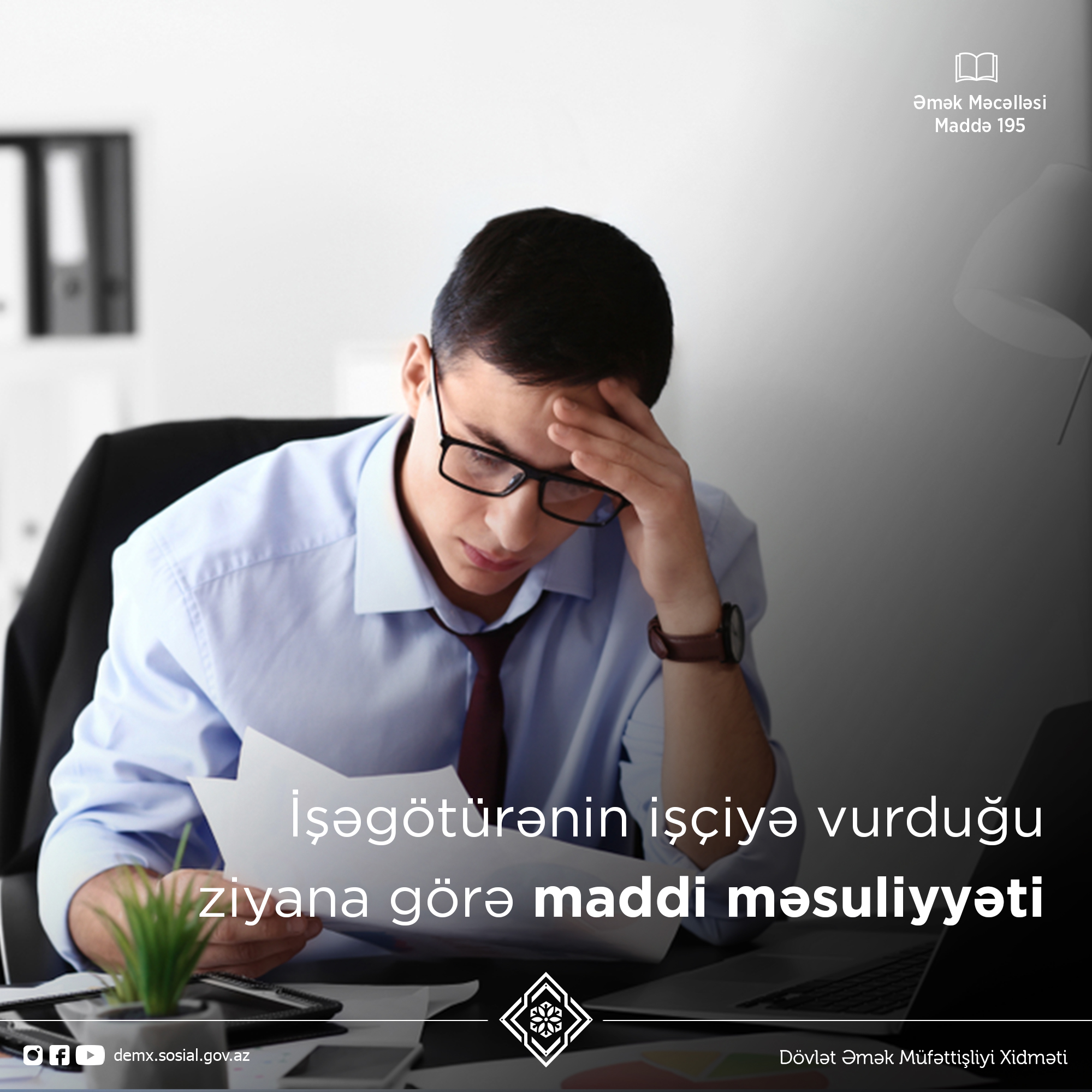 - Əmək müqaviləsi üzrə işəgötürən digər öhdəliklərini yerinə yetirmədiyinə görə işçiyə maddi ziyan dəydikdə;