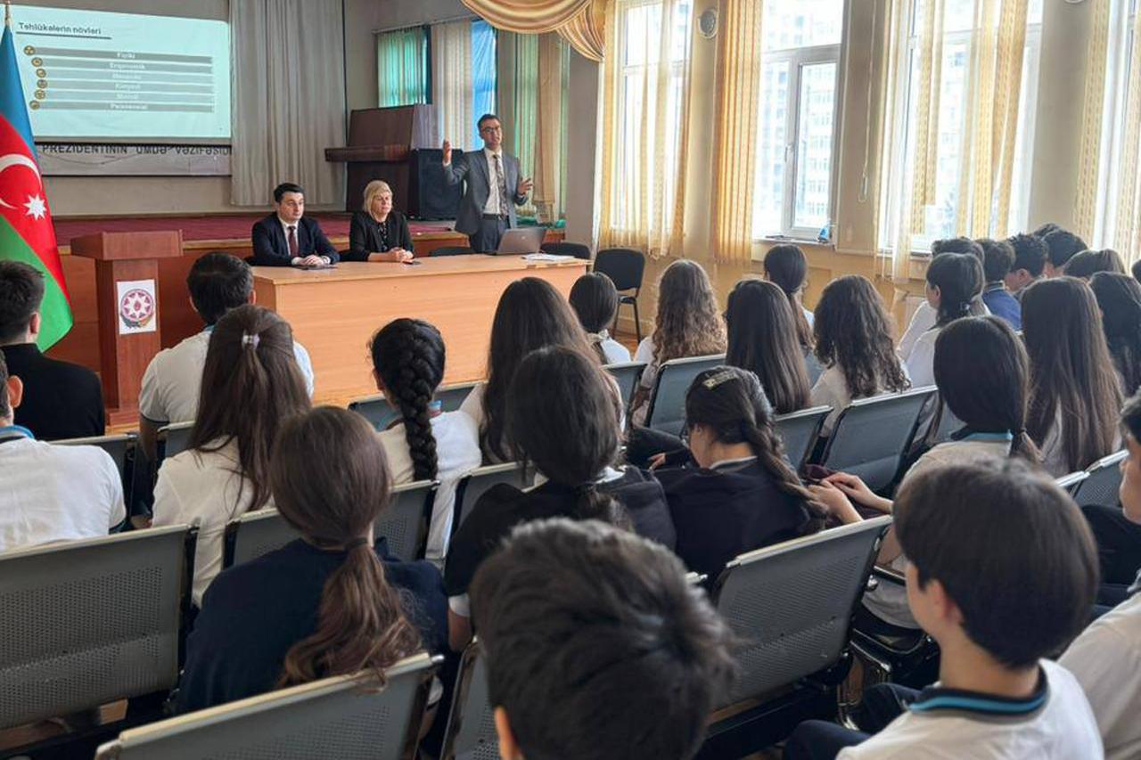 Əmək və Əhalinin Sosial Müdafiəsi Nazirliyi yanında Dövlət Əmək Müfəttişliyi Xidmətinin tabeliyində Əməyin Mühafizəsi Mərkəzi tərəfindən təşkil olunan növbəti tədbir Bakı şəhərində yerləşən “Ankara məktəbi” məktəb-liseyində keçirilib.