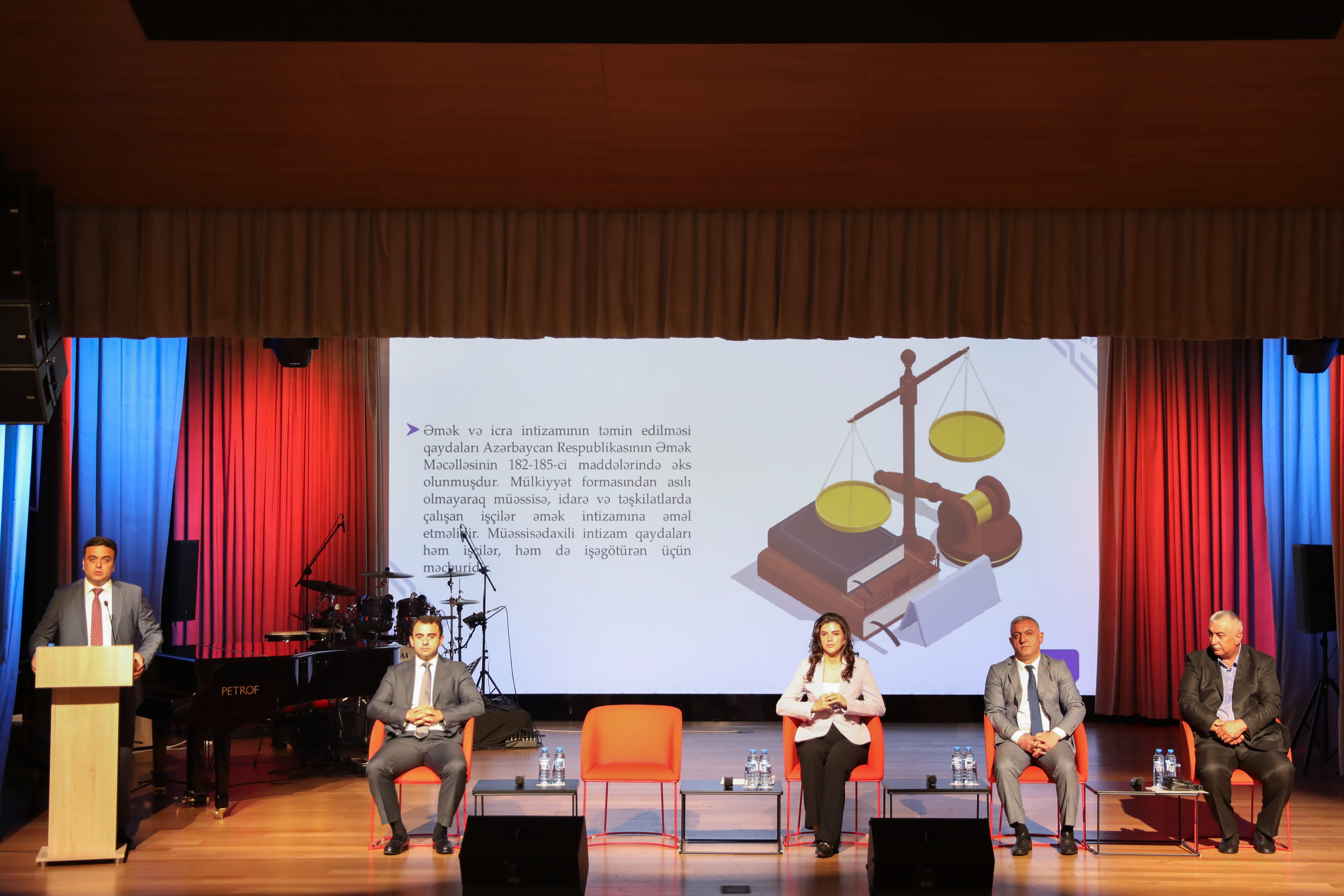 Tədbirdə çıxış edən Dövlət Əmək Müfəttişliyi Xidmətinin Bakı Şəhər İdarəsinin rəisi Rüfət Əliyev İnzibati Xətalar Məcəlləsinə edilən son dəyişikliklər barədə məlumat verib, iş yerlərində əməyin mühafizəsinin prioritet məsələlərdən olduğunu, bu istiqamətdə davamlı nəzarət, təlimlər və qabaqlayıcı tədbirlərin önəmli olduğunu qeyd edib.