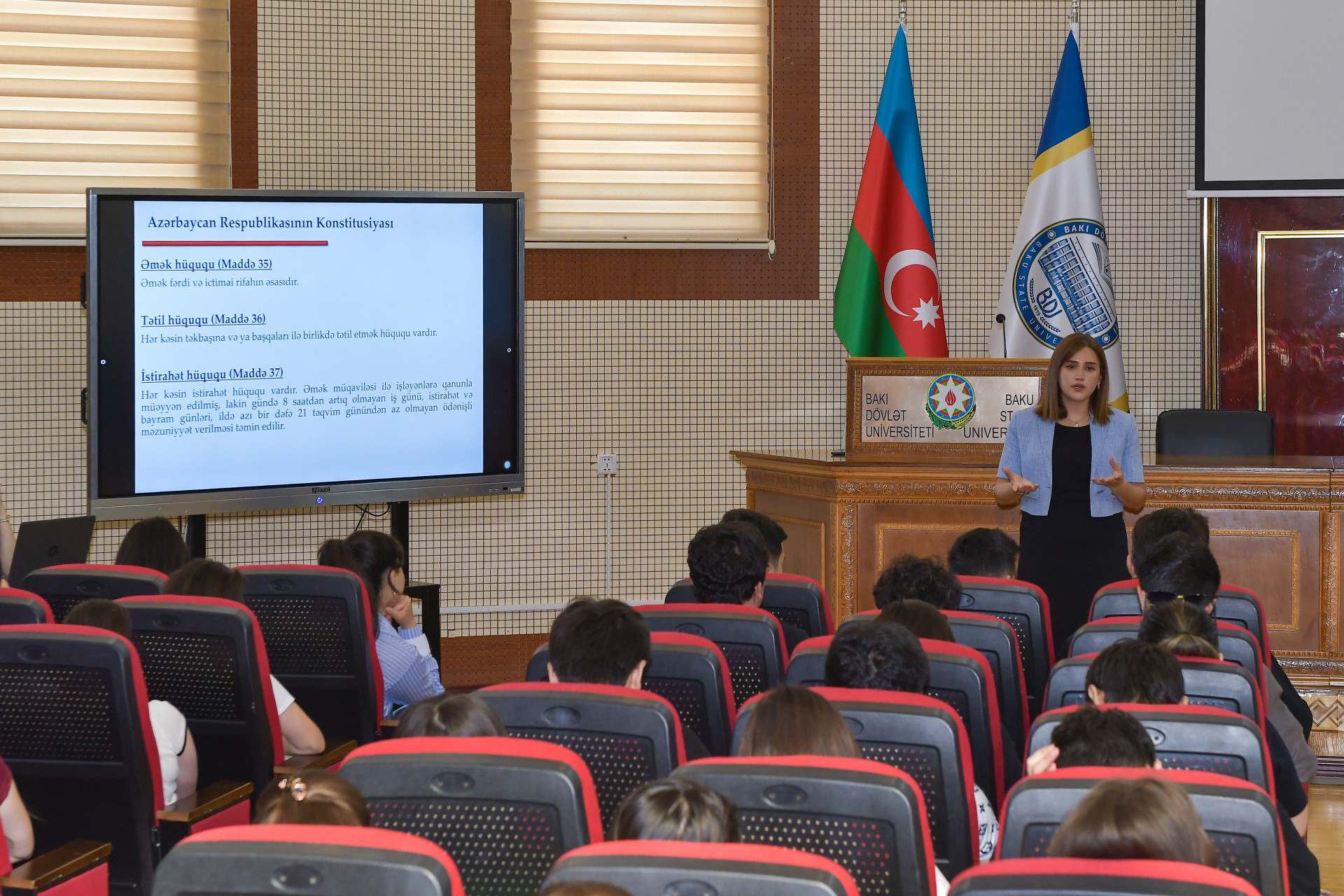 Əmək və Əhalinin Sosial Müdafiəsi Nazirliyi yanında Dövlət Əmək Müfəttişliyi Xidməti tərəfindən Bakı Dövlət Universitetində (BDU) “18 may - 18 iyun İnsan Hüquqları Aylığı" çərçivəsində “Əmək hüquqları və qanunvericilik” mövzusunda maarifləndirici təlim keçirilib.