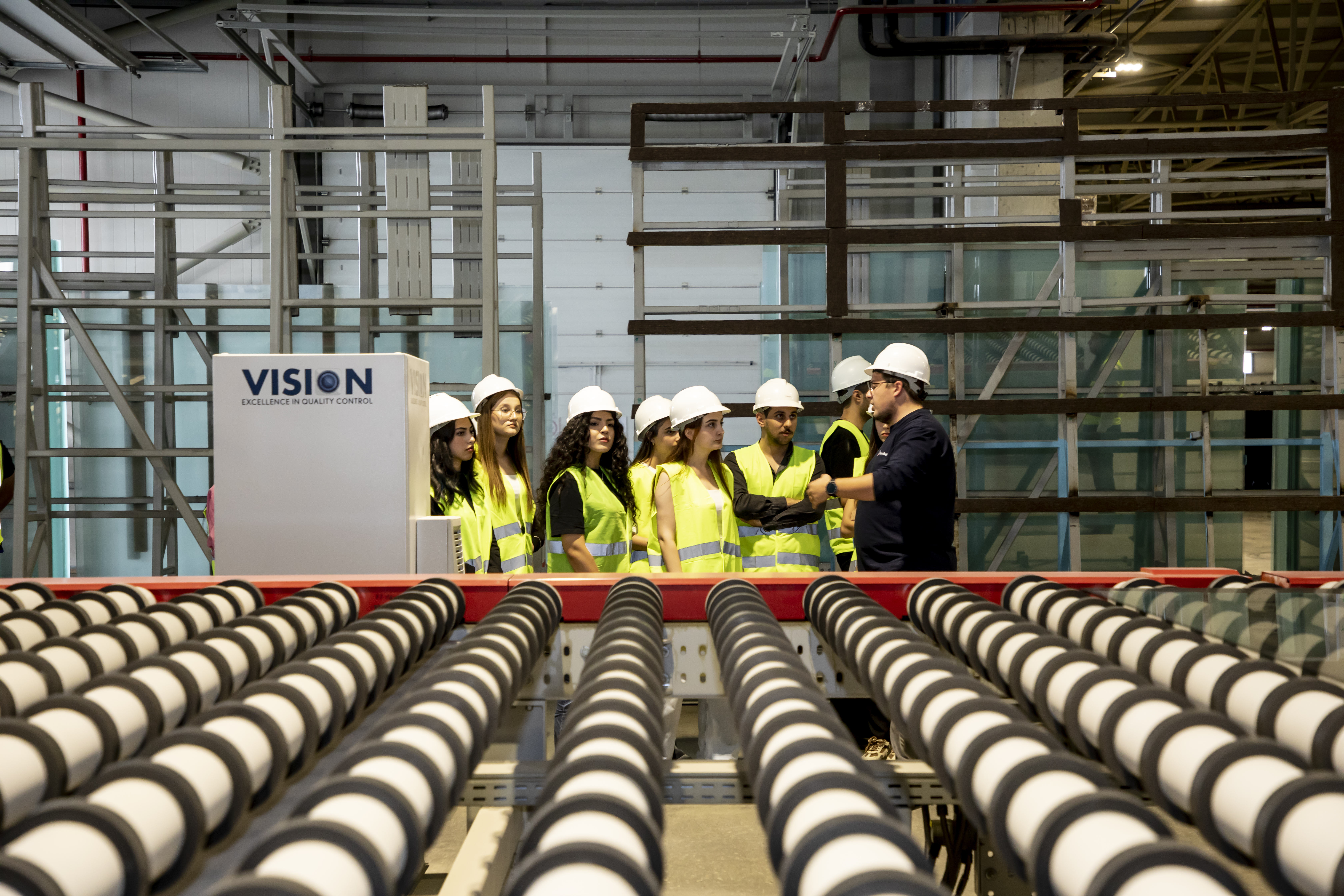 Müəssisədə təhlükəsizlik qaydaları ilə bağlı təlimatla tanış olduqdan sonra istehsalat barədə ətraflı məlumat alan könüllülər prosesi yaxından izləmək üçün real iş şəraiti ilə yaxından tanış olublar.