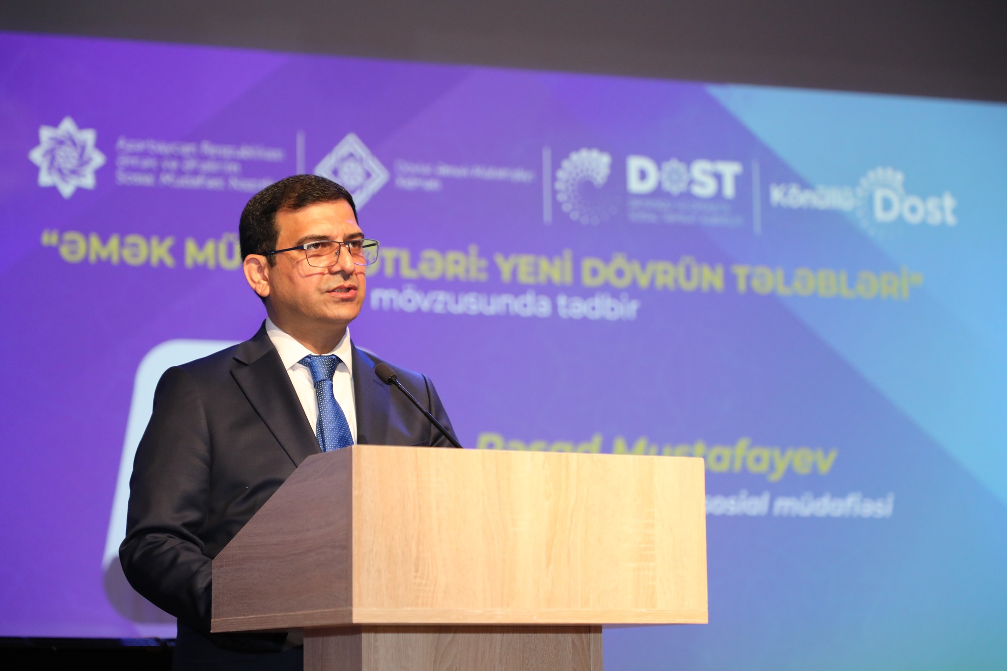 Tədbirdə əmək və əhalinin sosial müdafiəsi nazirinin müavini Rəşad Mustafayev aparılan sosial islahatların əmək münasibətləri sahəsini də əhatə etdiyini vurğulayıb. O, əmək qanunvericiliyinin mütərəqqi beynəlxalq təcrübə əsasında təkmilləşdirilməsi, əmək və məşğulluq sahələri üzrə xidmətlərin rəqəmsallaşdırılması istiqamətində son illər atılan addımları qeyd edib.