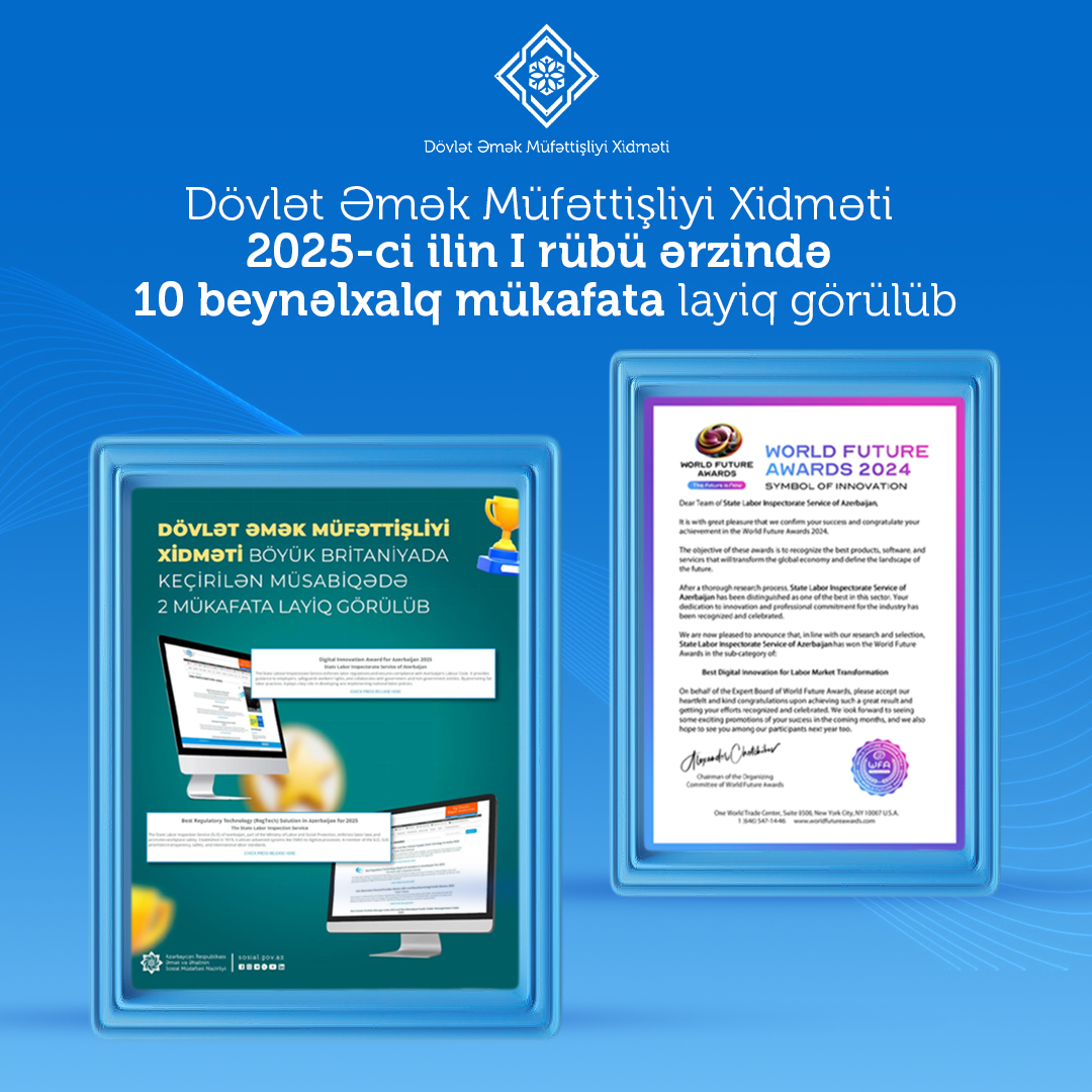 Əmək və Əhalinin Sosial Müdafiəsi Nazirliyi yanında Dövlət Əmək Müfəttişliyi Xidmətinin 2025-ci ilin I rübü ərzindəki fəaliyyəti beynəlxalq səviyyədə yüksək qiymətləndirilib.