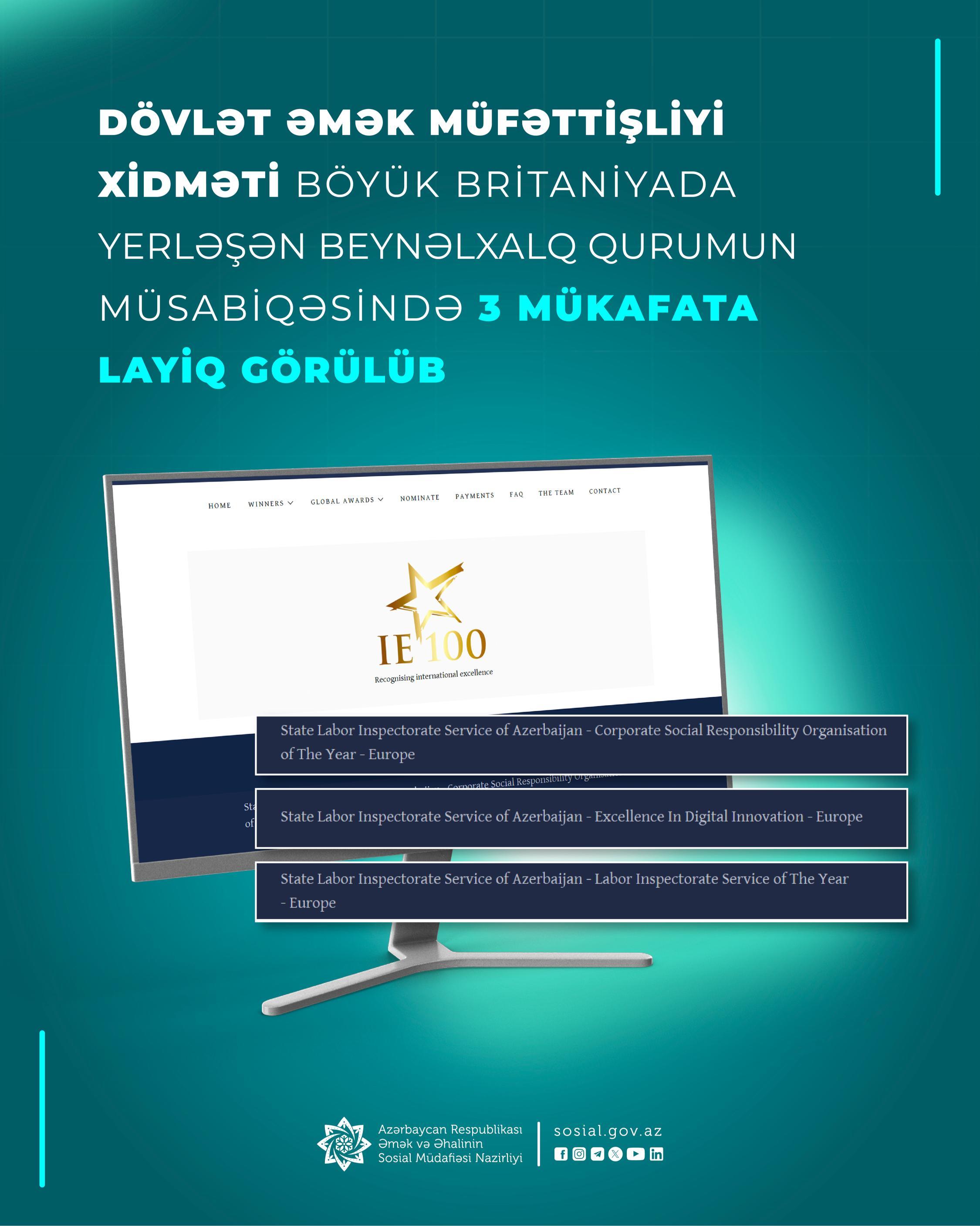 Böyük Britaniyada yerləşən “The International 100 Magazine” beynəlxalq qurumunun təşkil etdiyi müsabiqədə Xidmətin fəaliyyət istiqamətləri üzrə aparılan islahatlar, “Əmək və Məşğulluq” altsistemi, maarifləndirmə tədbirləri beynəlxalq ekspertlər tərəfindən yüksək qiymət alıb.