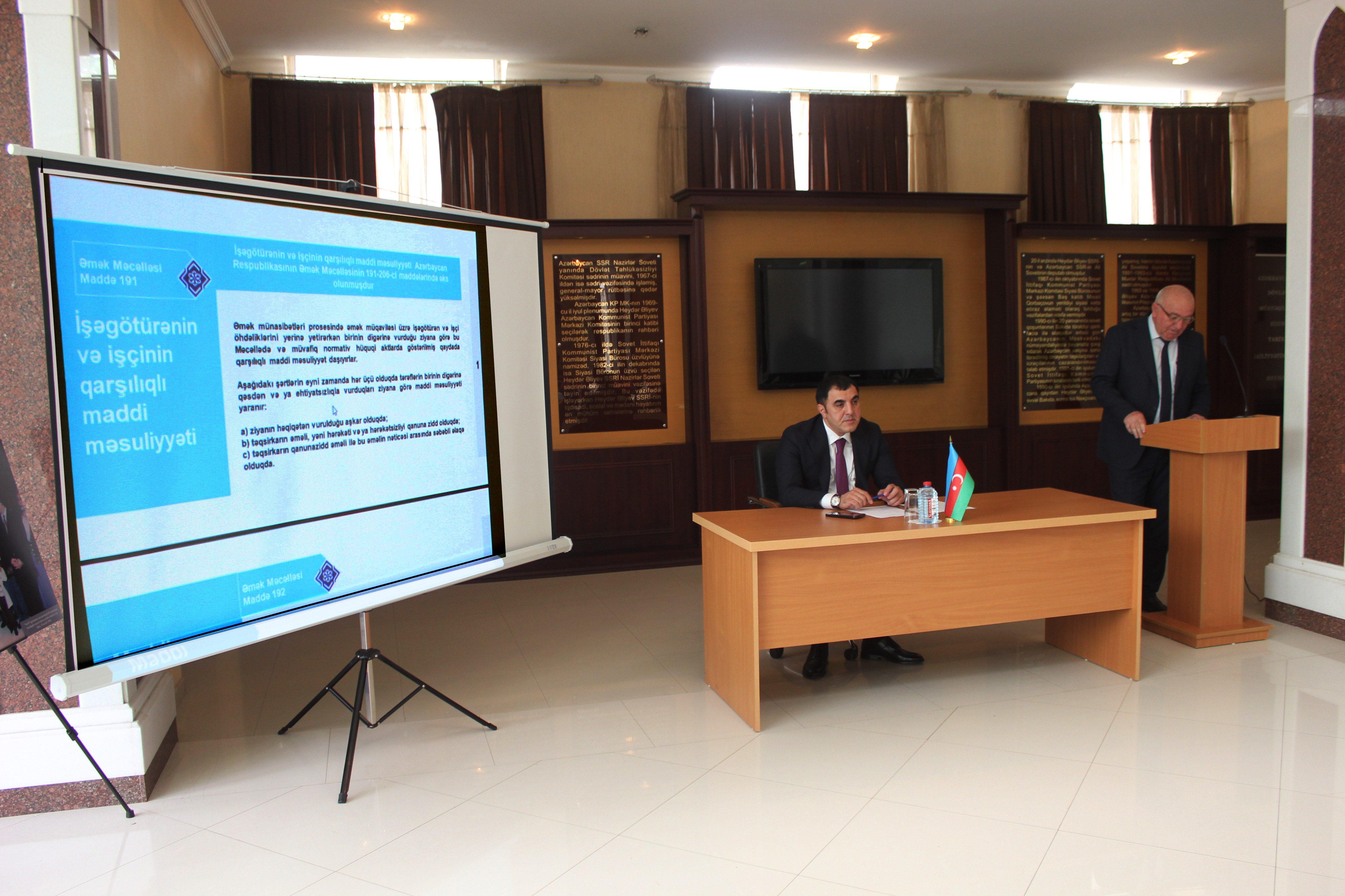 “Heydər Əliyev və Azərbaycanda əmək qanunvericiliyinə əməl olunmasına dövlət nəzarəti sisteminin qurulması” mövzularında videoçarx nümayiş olunub.