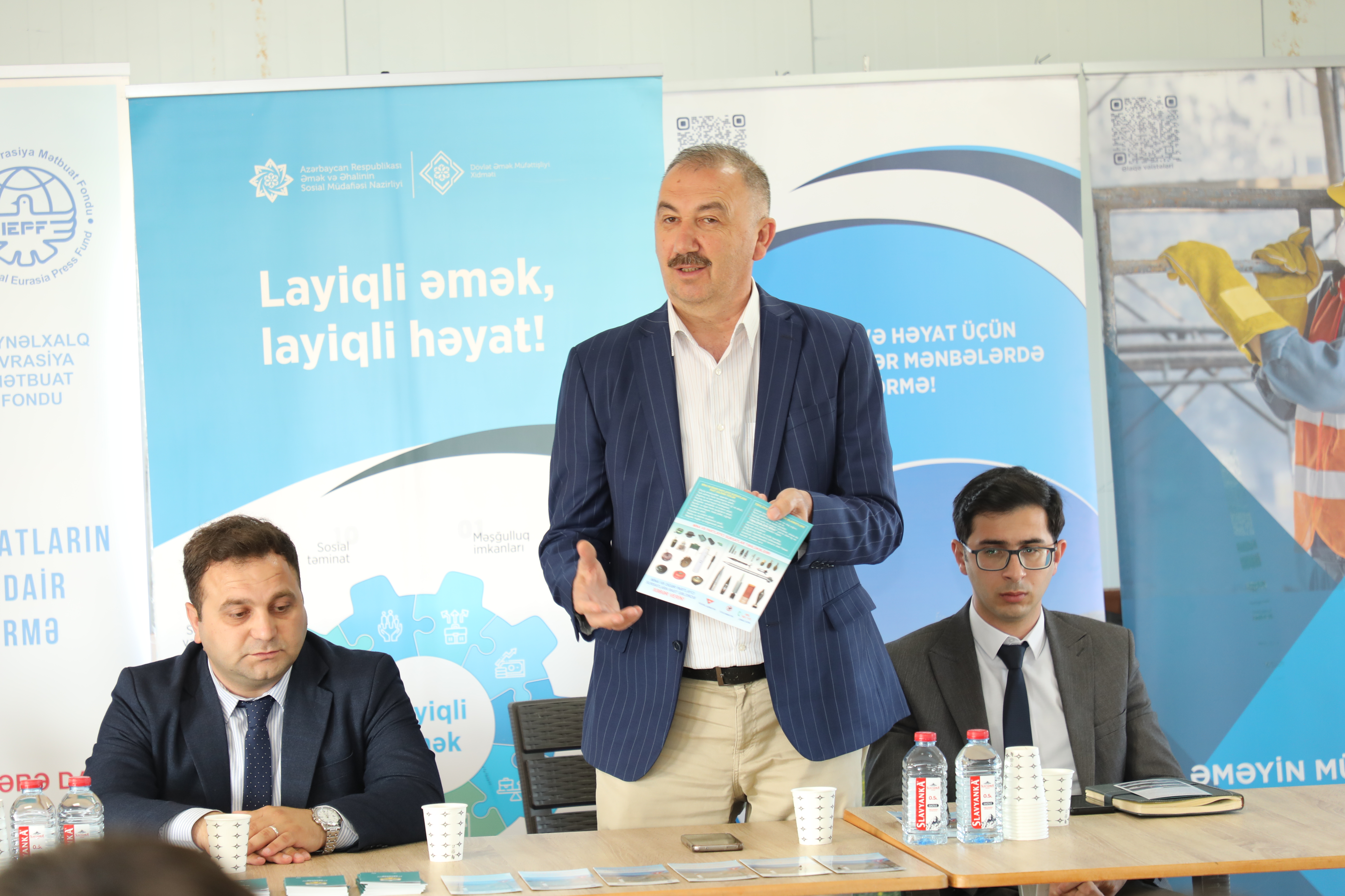 Tədbirlərdə Dövlət Əmək Müfəttişliyi Xidməti tabeliyində "Əməyin Mühafizəsi Mərkəzi" publik hüquqi şəxs, Əmək və Əhalinin Sosial Müdafiəsi Nazirliyi tabeliyində Dövlət Məşğulluq Agentliyi, Azərbaycan Respublikasının Minatəmizləmə Agentliyi, Beynəlxalq Avrasiya Mətbuat Fondu, Kiçik və Orta Biznesin İnkişafı Agentliyi və Azərbaycan Həmkarlar İttifaqları Konfederasiyasının nümayəndələri iştirak edib, fəaliyyət istiqamətləri üzrə maarifləndirmə işi aparıblar.
