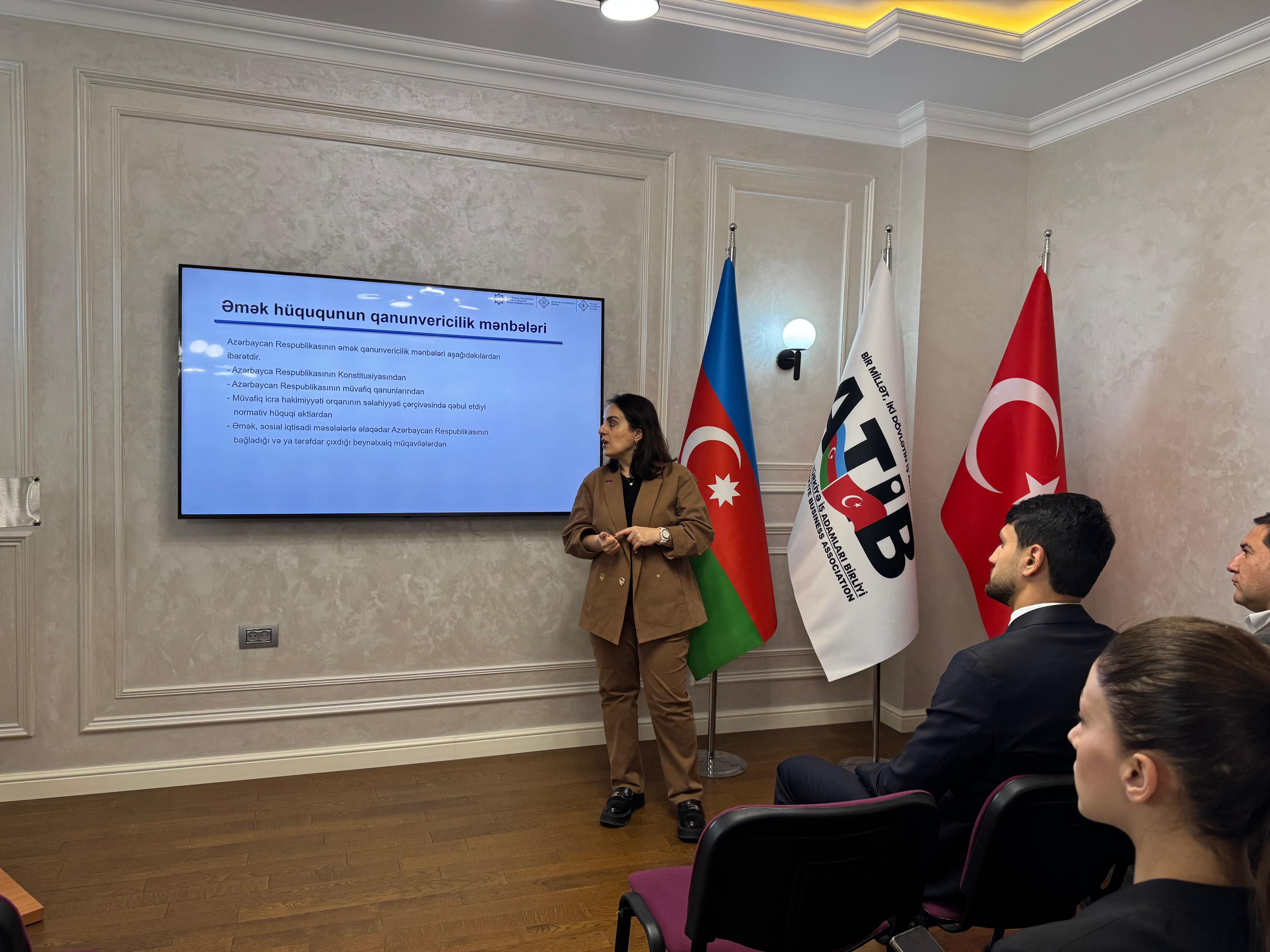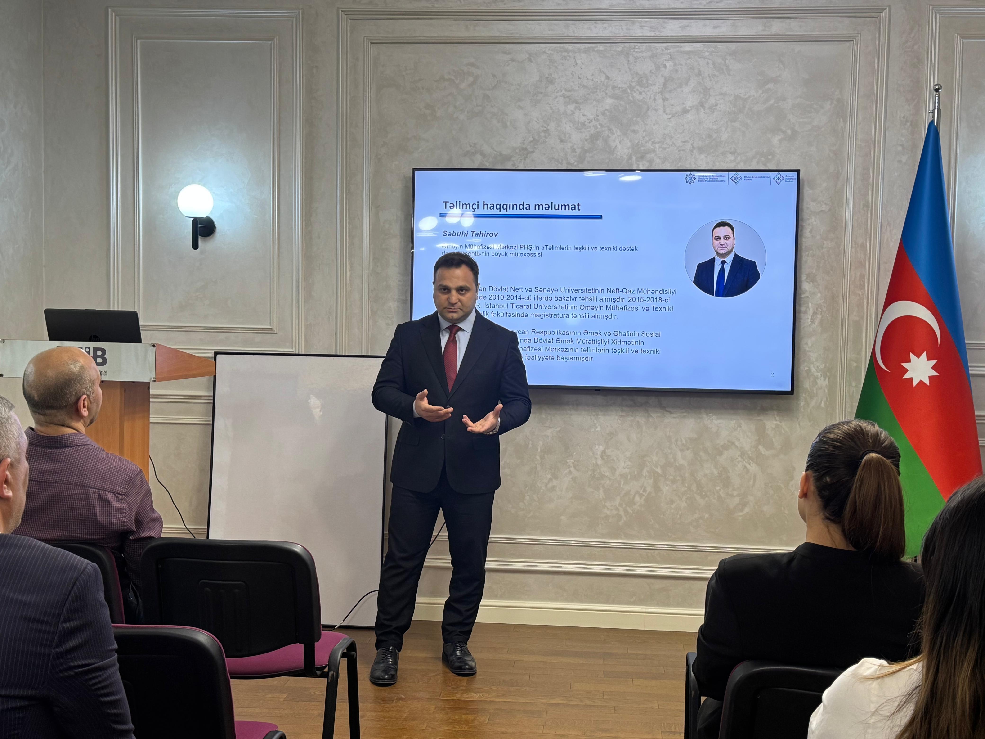 Növbəti təlim Xidmətin tabeliyində fəaliyyət göstərən Əməyin Mühafizəsi Mərkəzi və Azərbaycan-Türkiyə İş Adamları Birliyinin birgə təşkilatçılığı ilə keçirilib.