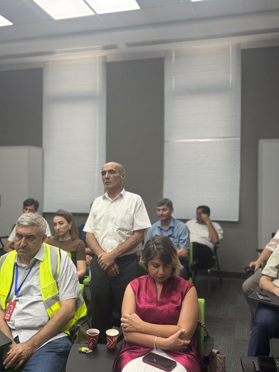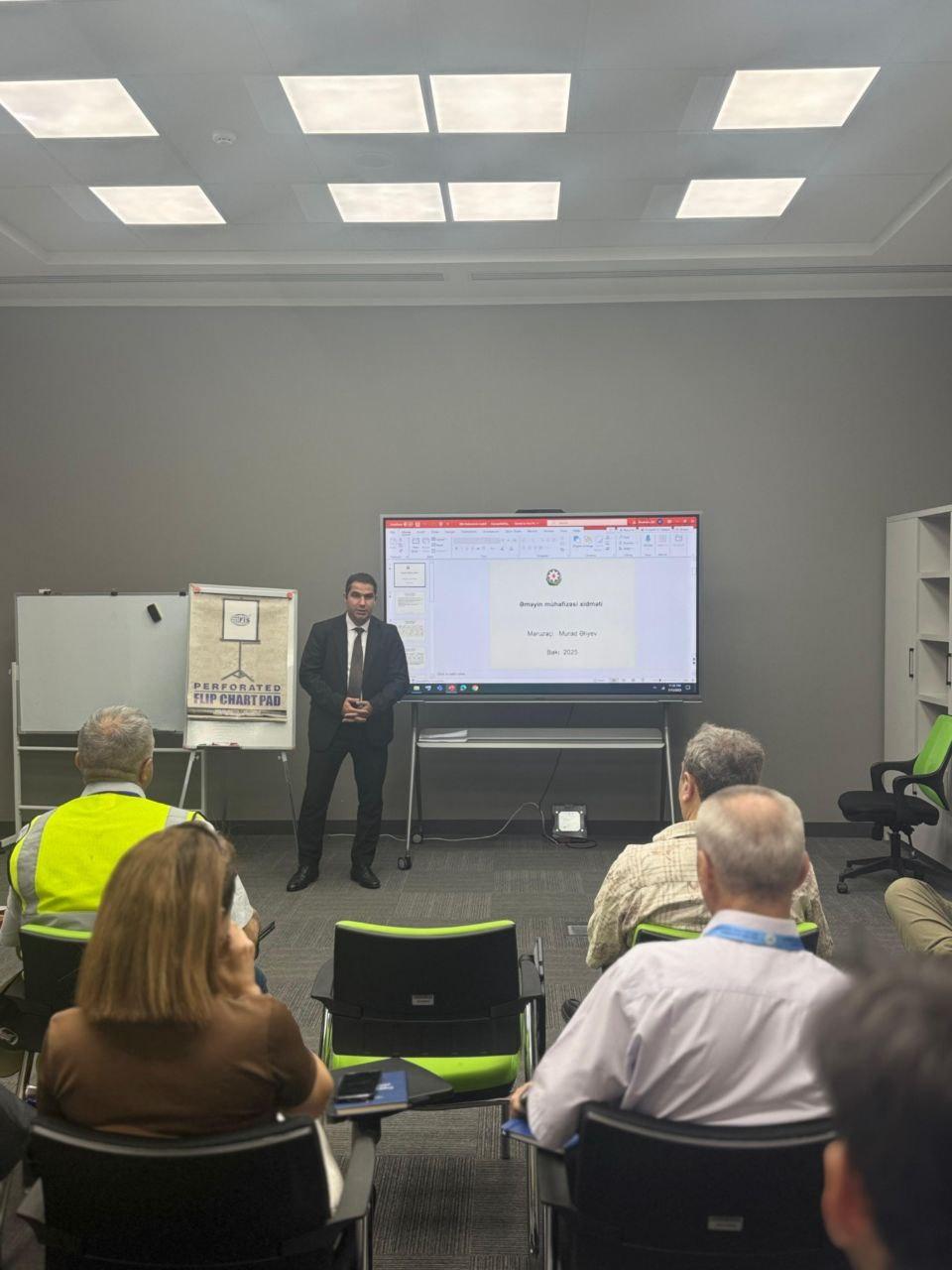 Təlimdə Əməyin Mühafizəsi Mərkəzinin və İcbari Sığorta Bürosunun nümayəndələri əməyin mühafizəsi və istehsalatda bədbəxt hadisələr, peşə xəstəlikləri nəticəsində peşə əmək qabiliyyətinin itirilməsi hallarından icbari sığorta mövzuları ilə bağlı təqdimatlarla çıxış ediblər.