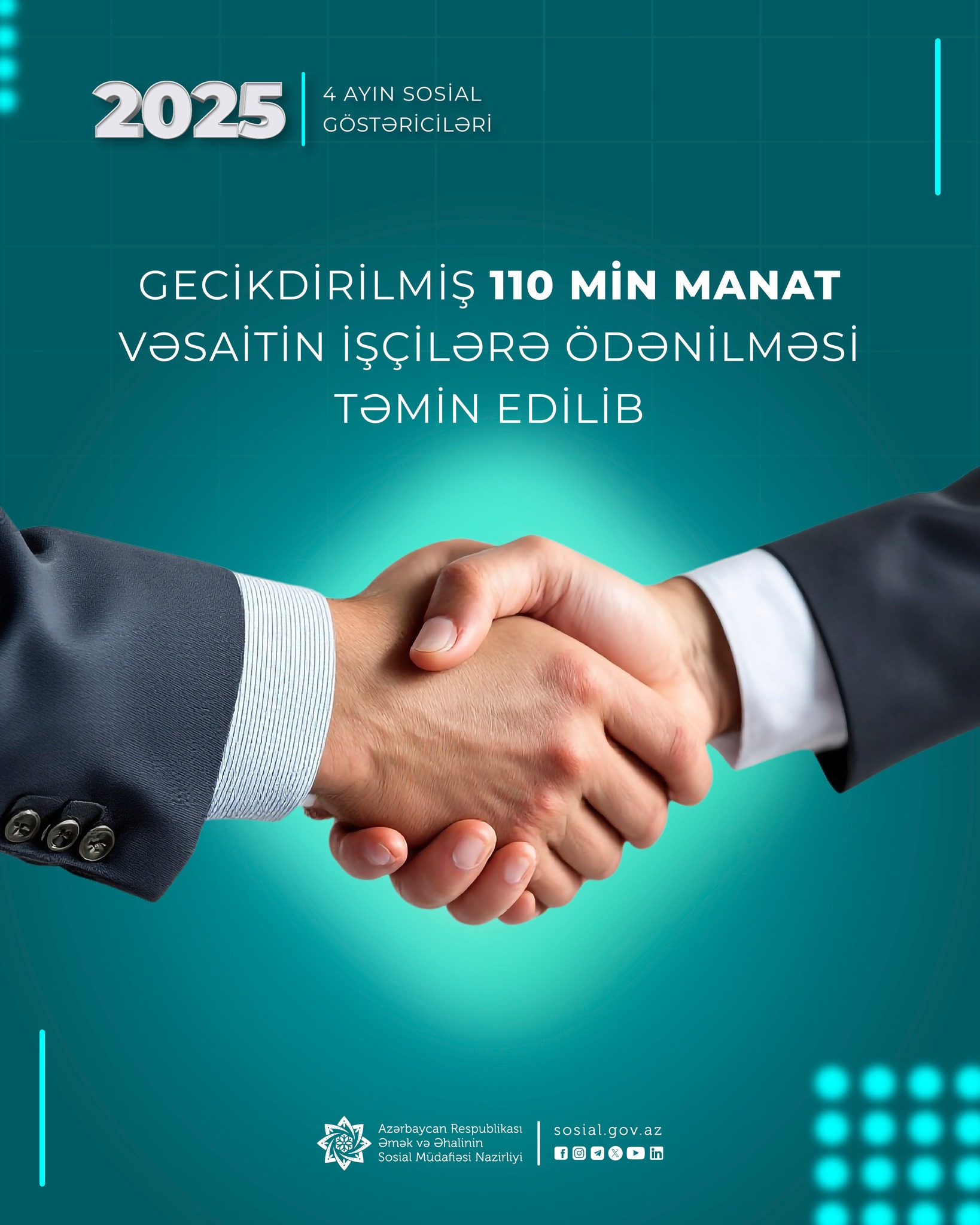 Əmək və Əhalinin Sosial Müdafiəsi Nazirliyi yanında Dövlət Əmək Müfəttişliyi Xidməti 2025-ci ilin yanvar-aprel ayları ərzində işəgötürənlər tərəfindən sosial xarakterli ödənişlər olan 110 min manata yaxın vəsaitin işçilərə ödənilməsinin gecikdirildiyini müəyyən edib.