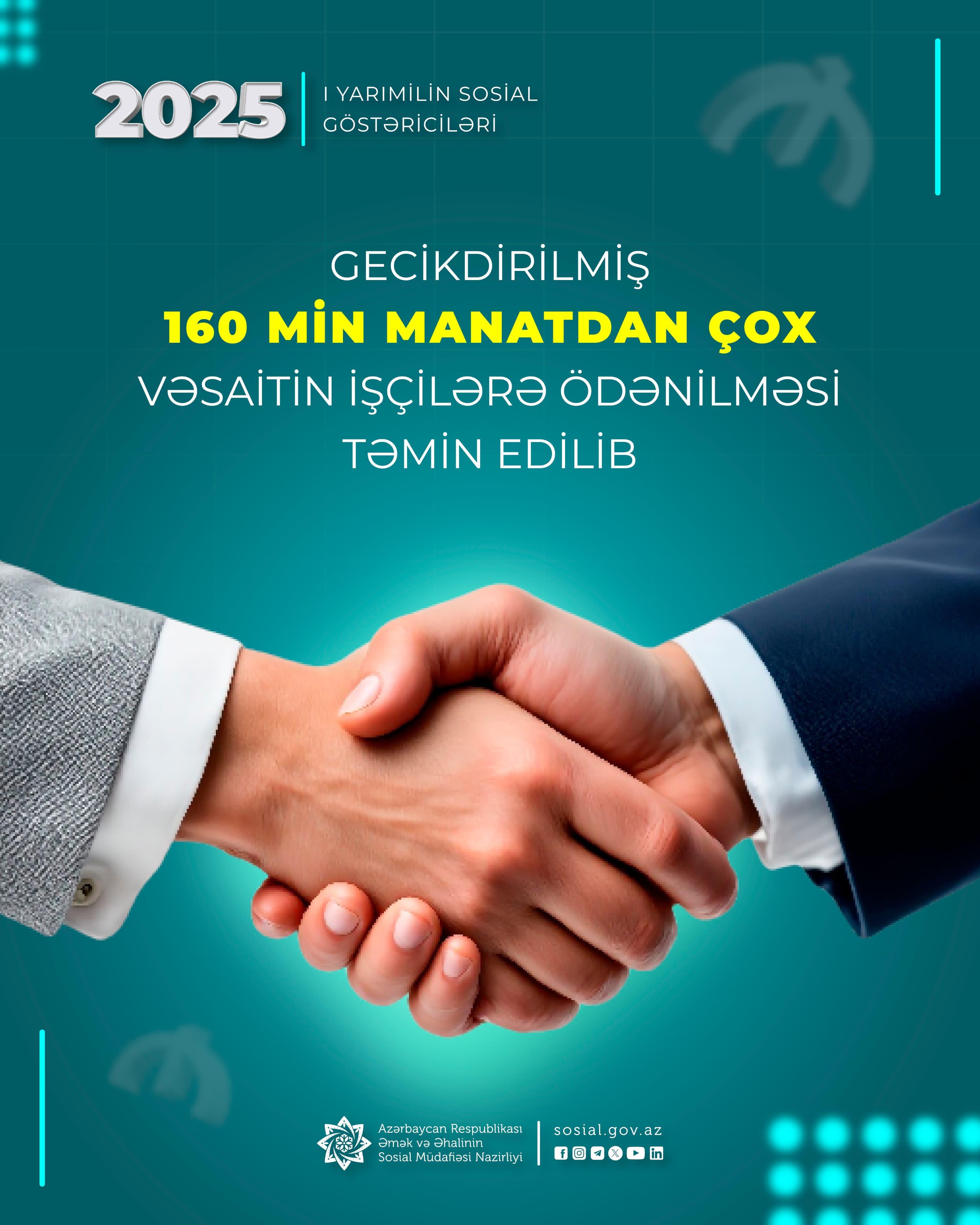 Əmək və Əhalinin Sosial Müdafiəsi Nazirliyi yanında Dövlət Əmək Müfəttişliyi Xidməti bu ilin birinci yarımilində işəgötürənlər tərəfindən sosial xarakterli ödənişlər olan 160 257 manat vəsaitin işçilərə ödənilməsinin gecikdirildiyini müəyyən edib.