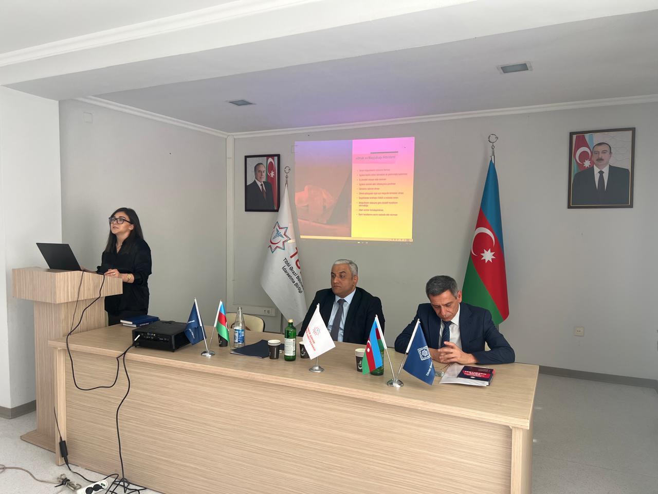 Tədbirdə həmçinin Əməyin Mühafizəsi Mərkəzinin fəaliyyət istiqamətləri barədə məlumat verilib. Müəssisələrdə əməyin mühafizəsi üzrə standart, norma və qaydaların tətbiqinə göstərilən dəstək vurğulanıb və yeni qəbul edilmiş standartlarla bağlı iştirakçılar ətraflı məlumatlandırılıb.