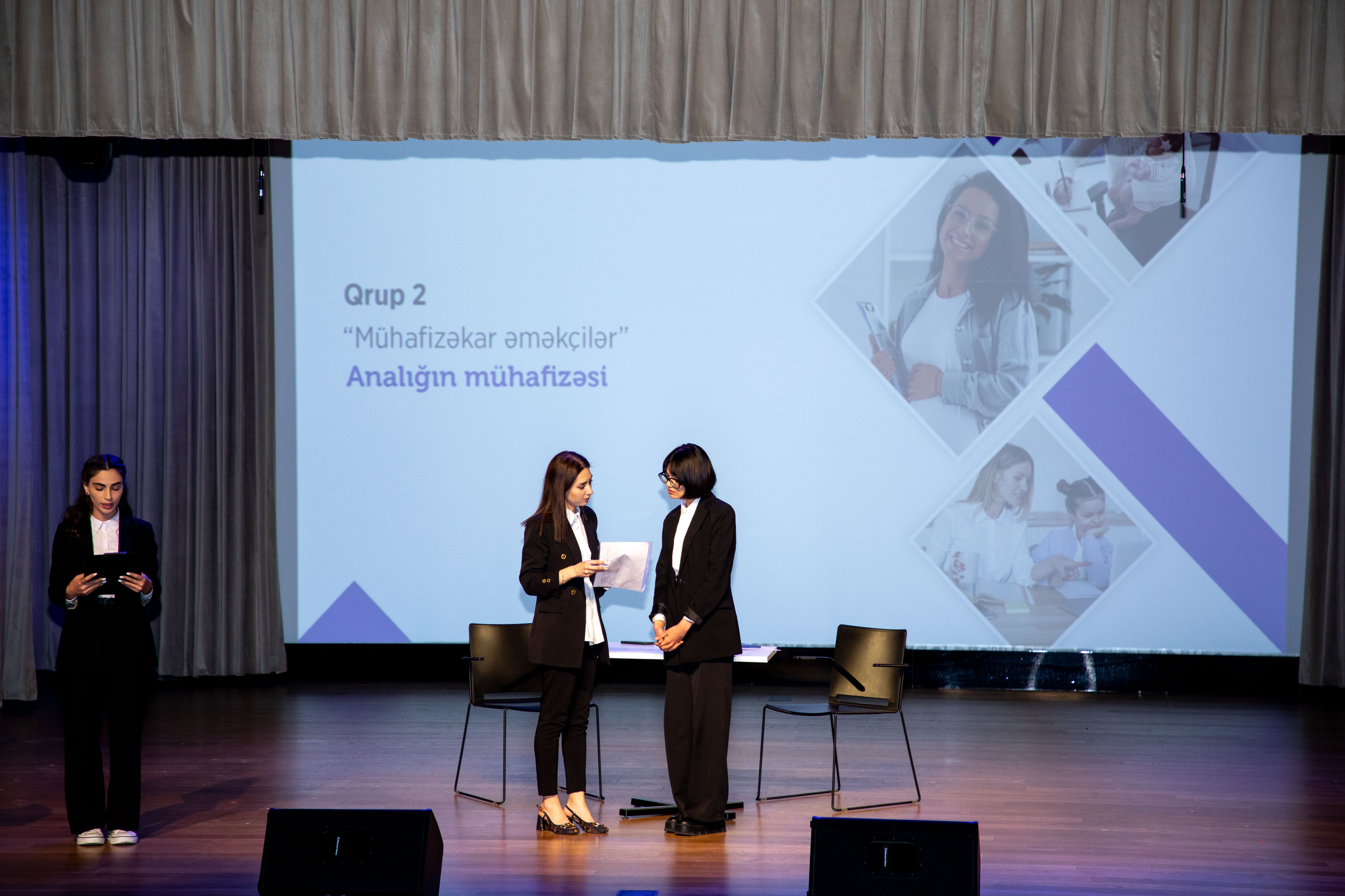 “Sosial-teatr” da iştirak edən könüllülər dörd qrupa bölünməklə çıxış ediblər. Qrupların mövzuları tikinti sektorunda təhlükəsizlik, analığın mühafizəsi, daş karxanalarında təhlükəli əmək şəraiti və qeyri-formal məşğulluğun qarşısının alınması olub. Teatrda çıxış edən könüllülər əmək hüquqlarının qorunmasının, qeyri-rəsmi məşğulluqla mübarizəninin vacibliyini diqqətə çatdırmağa çalışıblar. Müsabiqənin qalibi tikinti sektorunda təhlükəsizlik mövzusu ilə çıxış edən “Əməksevər DOSTlar” komandası olub. Qaliblərə və təlim iştirakçılarına hədiyyələr və sertifikatlar təqdim edilib.