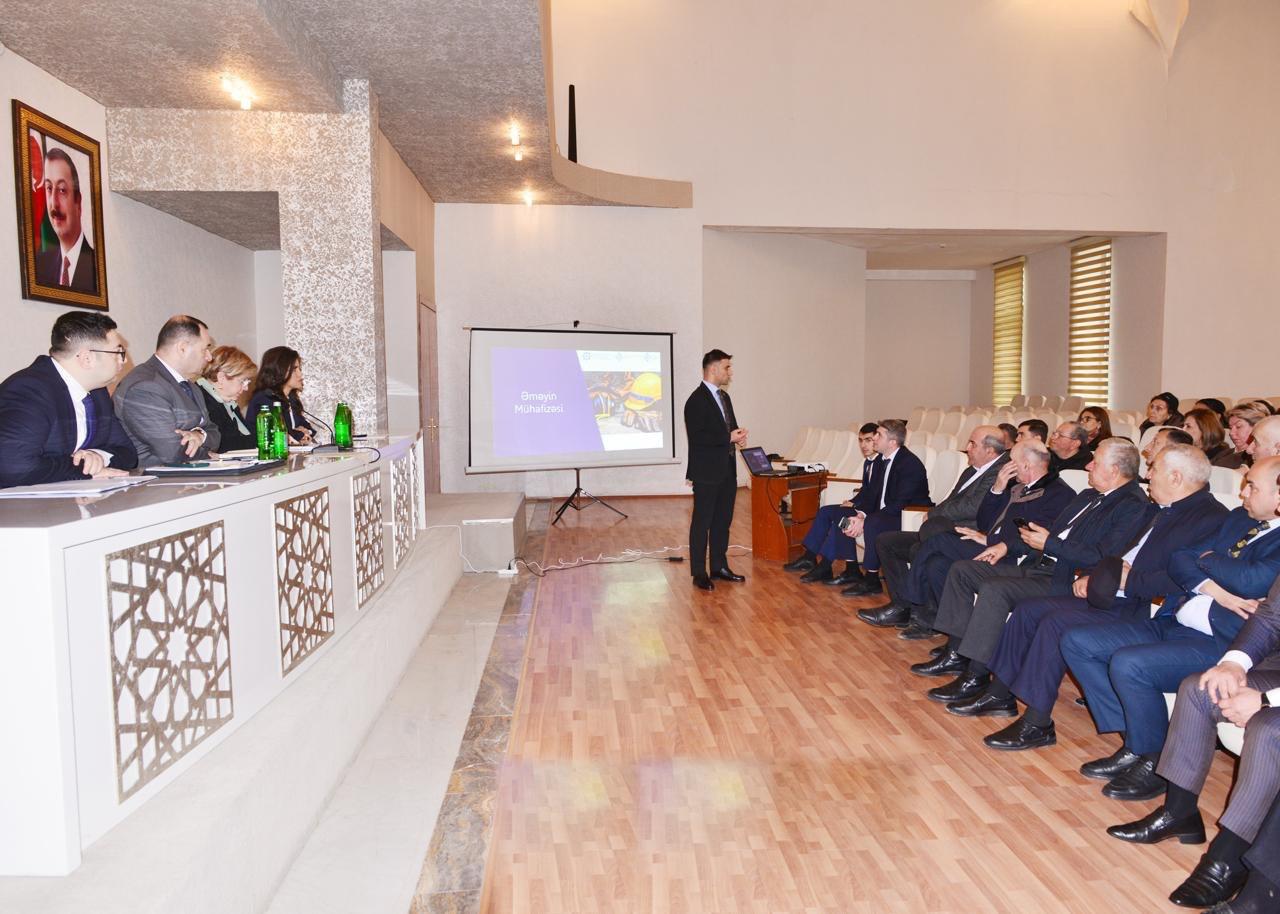 Görüşdə “İstehsalatda baş verən bədbəxt hadisələrdən sığorta” və “İş yerlərində əməyin mühafizəsi” mövzuları müzakirə edilib.