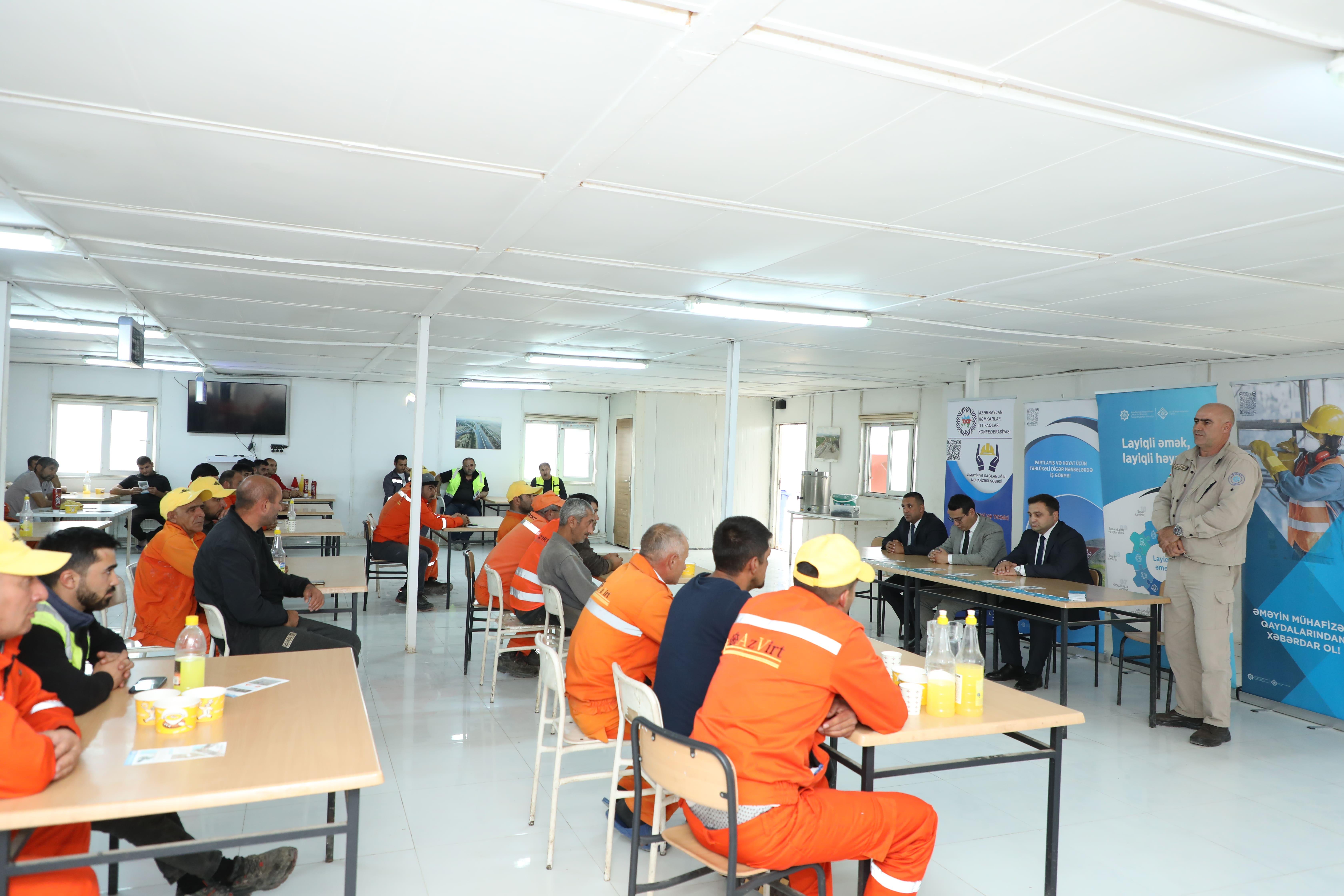 Maarifləndirmə tədbiri zamanı iştirakçılara əməyin mühafizəsi, iş yerlərinin attestasiyası, işçilərin sağlam və təhlükəsiz şəraitdə çalışması, həmçinin yeni dövlət standartlarının tətbiqi ilə bağlı ətraflı məlumat verilib. Eyni zamanda dövlətin layiqli əmək siyasəti, əmək qanunvericiliyinin əsas tələbləri, iş yerlərində təhlükəsizlik standartları və mina təhlükəsizliyi qaydaları iştirakçıların diqqətinə çatdırılıb.