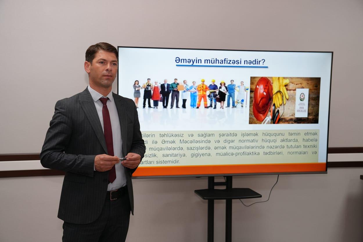 Təlimdə həmçinin müəssisələrdə əməyin mühafizəsi üzrə standart, norma və qaydaların tətbiqi, Əməyin Mühafizəsi Mərkəzinin fəaliyyət istiqamətləri ilə bağlı məlumatlar iştirakçıların diqqətinə çatdırılıb.