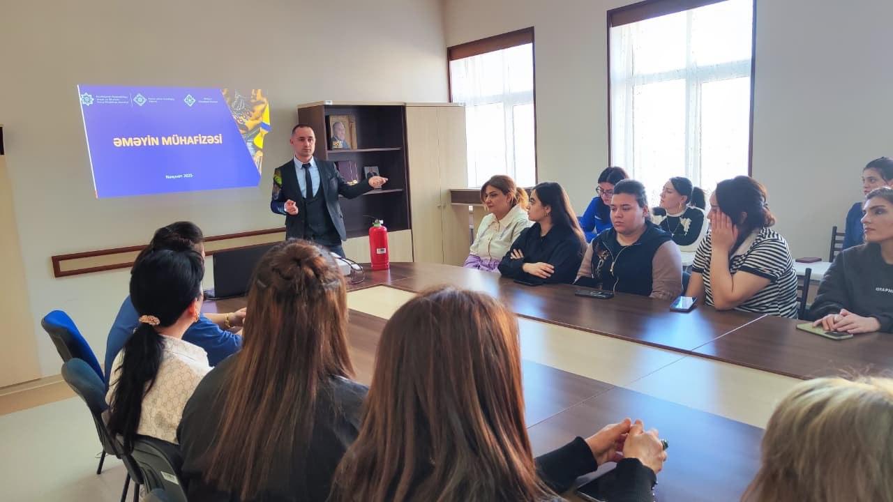 Təlim zamanı əməyin mühafizəsi üzrə ümumi tələblər, sağlam və təhlükəsiz əmək şəraitinin yaradılması, müəssisələrdə müvafiq norma və qaydaların tətbiqi, həmçinin yanğın təhlükəsizliyi və ilk yardım qaydaları barədə ətraflı məlumat verilib.
