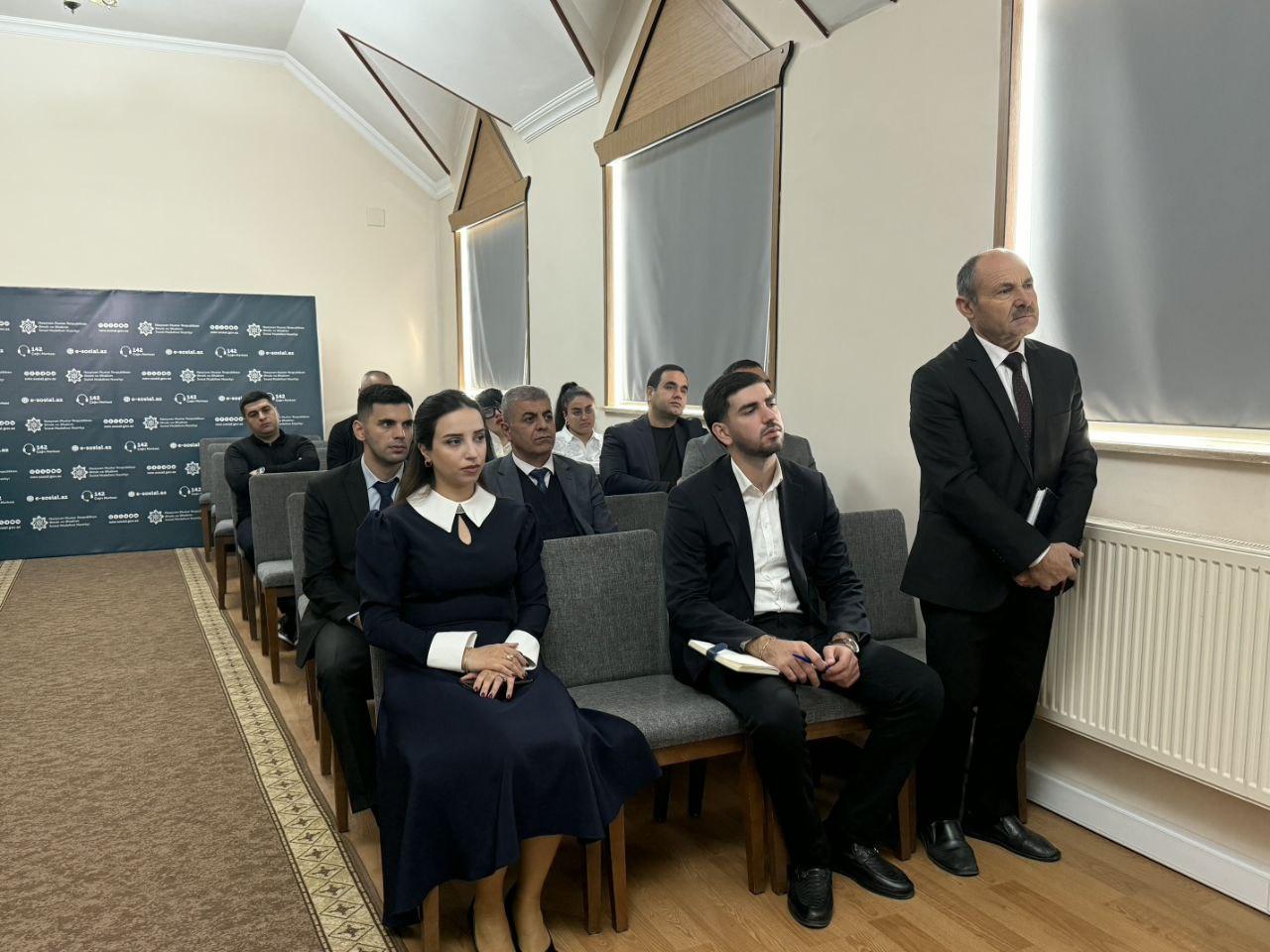 Daha sonra Əməyin Mühafizəsi Mərkəzinin Naxçıvan filialının əməkdaşı müəssisələrdə əməyin mühafizəsi üzrə standart və qaydaların tətbiqi, yeni qəbul edilmiş standartların tətbiq sahələri, mərkəzin fəaliyyət istiqamətləri və iş yerlərinin attestasiyasının keçirilməsi prosedurları barədə ətraflı məlumat təqdim edib.