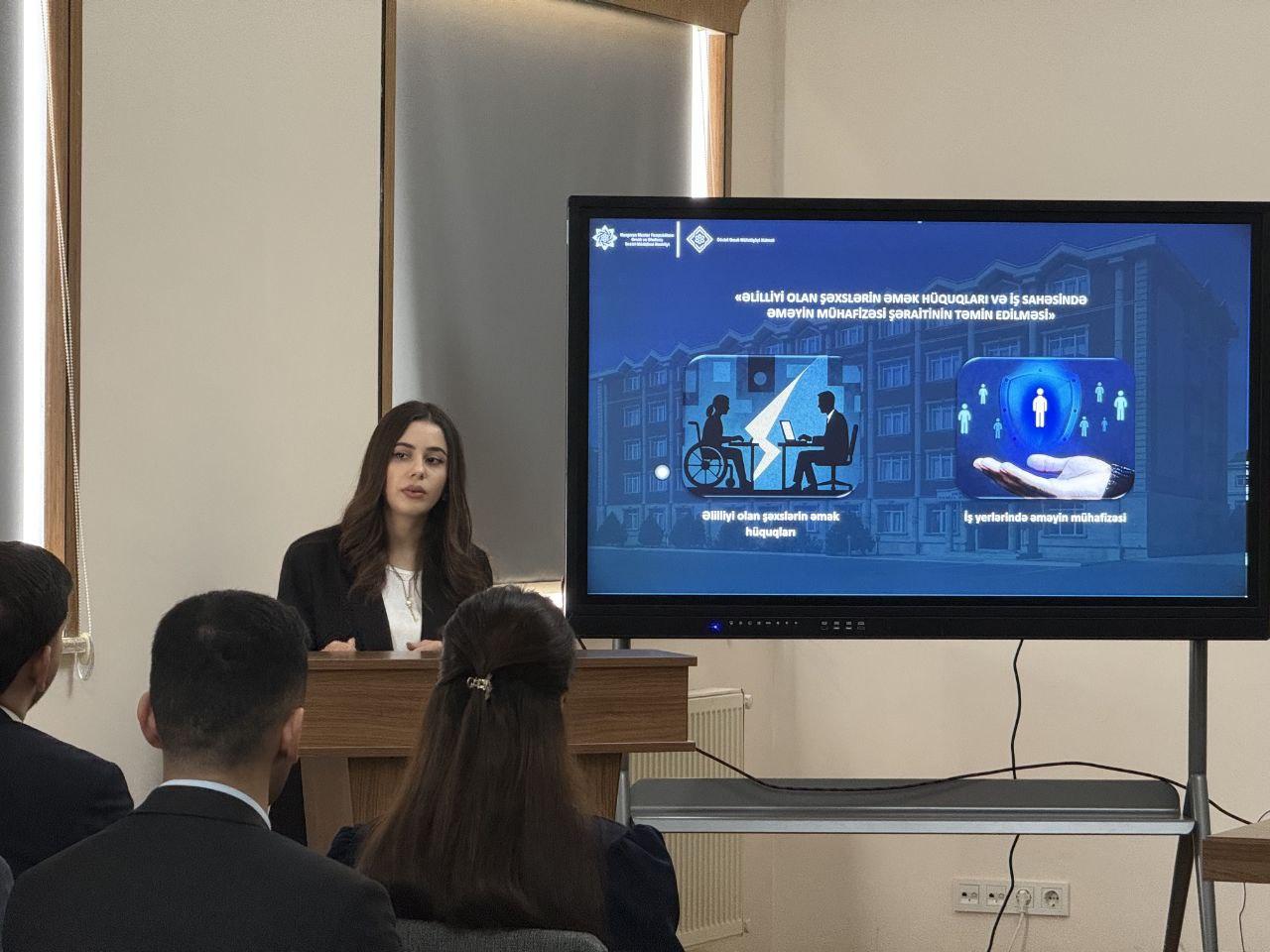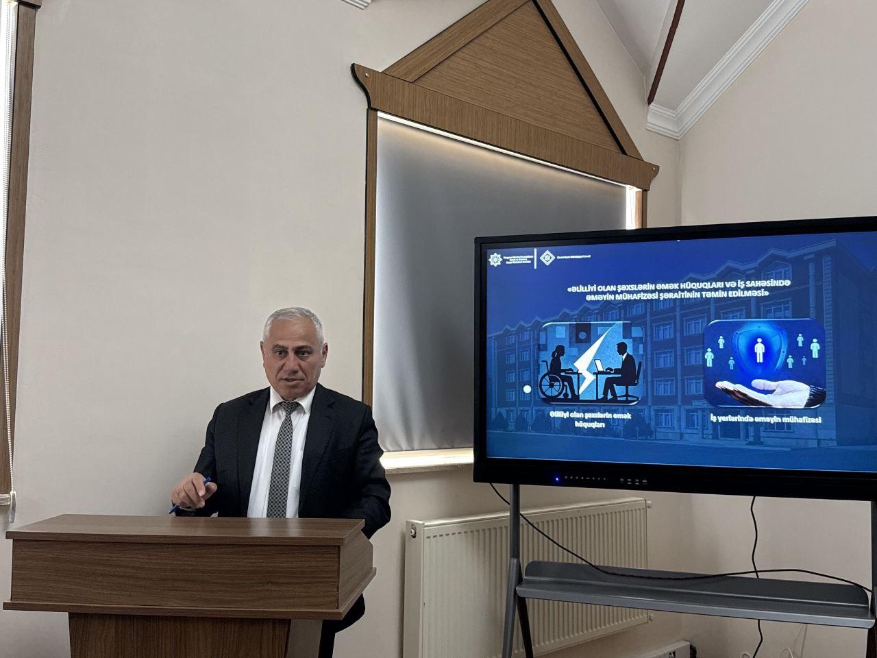 Tədbirdə Dövlət Əmək Müfəttişliyi Xidmətinin əməkdaşları tərəfindən müəssisə və təşkilatlarda əlilliyi olan şəxslərin əmək hüquqlarının qorunması, eləcə də işəgötürənlərin bu istiqamətdəki öhdəlikləri və əmək qanunvericiliyinin müvafiq tələbləri barədə iştirakçılara ətraflı məlumat verilib. Bununla yanaşı iş yerlərində sağlam və təhlükəsiz əmək şəraitinin yaradılması, əməyin mühafizəsi və təhlükəsizlik normalarına riayət edilməsinə dair məsələlər iştirakçıların diqqətinə çatdırılıb.