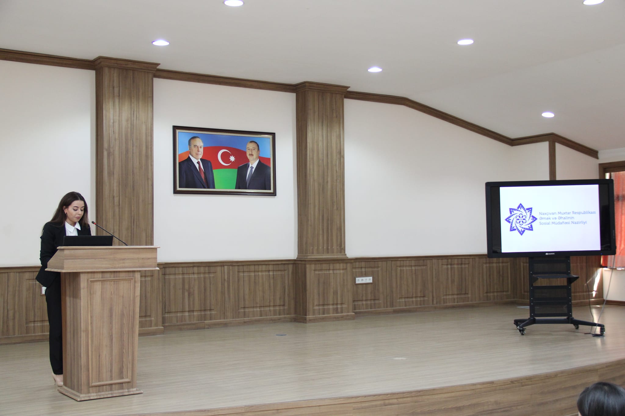 Tədbirdə Naxçıvan Muxtar Respublikasının Dövlət Əmək Müfəttişliyi Xidmətinin və Azərbaycan Respublikasının Dövlət Əmək Müfəttişliyi Xidmətinin tabeliyində “Əməyin Mühafizəsi Mərkəzi” publik hüquqi şəxsin, Naxçıvan Muxtar Respublikasının Ailə, Qadın və Uşaq Problemləri üzrə Dövlət Komitəsinin və Naxçıvan Muxtar Respublikasının Həmkarlar İttifaqları Şurasının əməkdaşlarının mövzu ilə bağlı çıxışları dinlənilib.