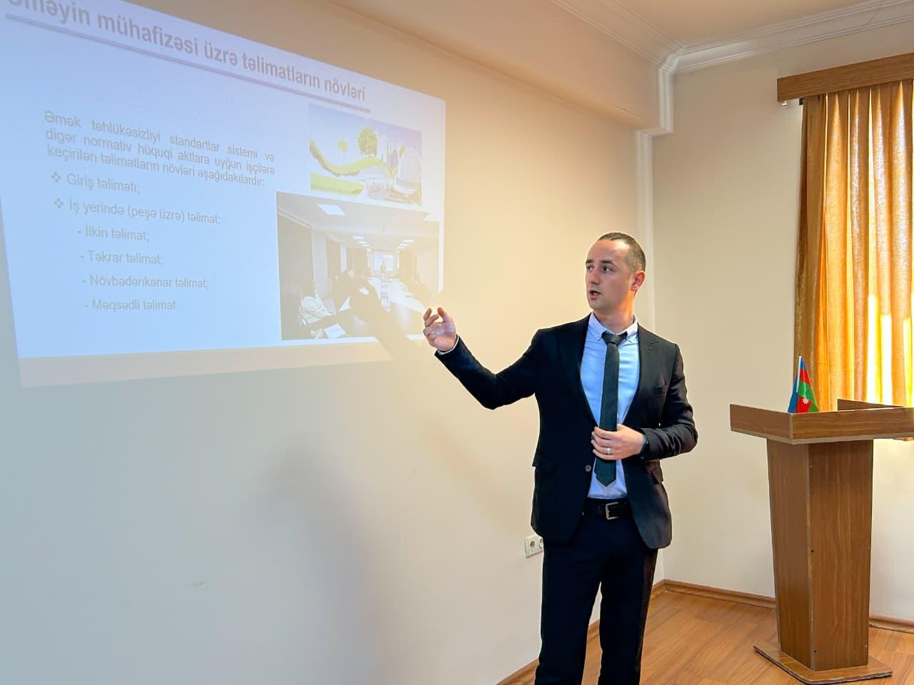 Təlim Əməyin Mühafizəsi Mərkəzinin Naxçıvan filialının təşkilatçılığı və Naxçıvan Muxtar Respublikası Dövlət Əmək Müfəttişliyi Xidmətinin əməkdaşının iştirakı ilə baş tutub.