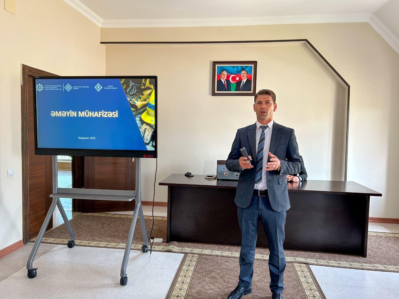 Naxçıvan Muxtar Respublikasında “İş yerlərində əməyin mühafizəsi, texniki təhlükəsizlik, iş yerlərinin attestasiyası və icbari sığorta” mövzusunda növbəti maarifləndirmə təlimi keçirilib.