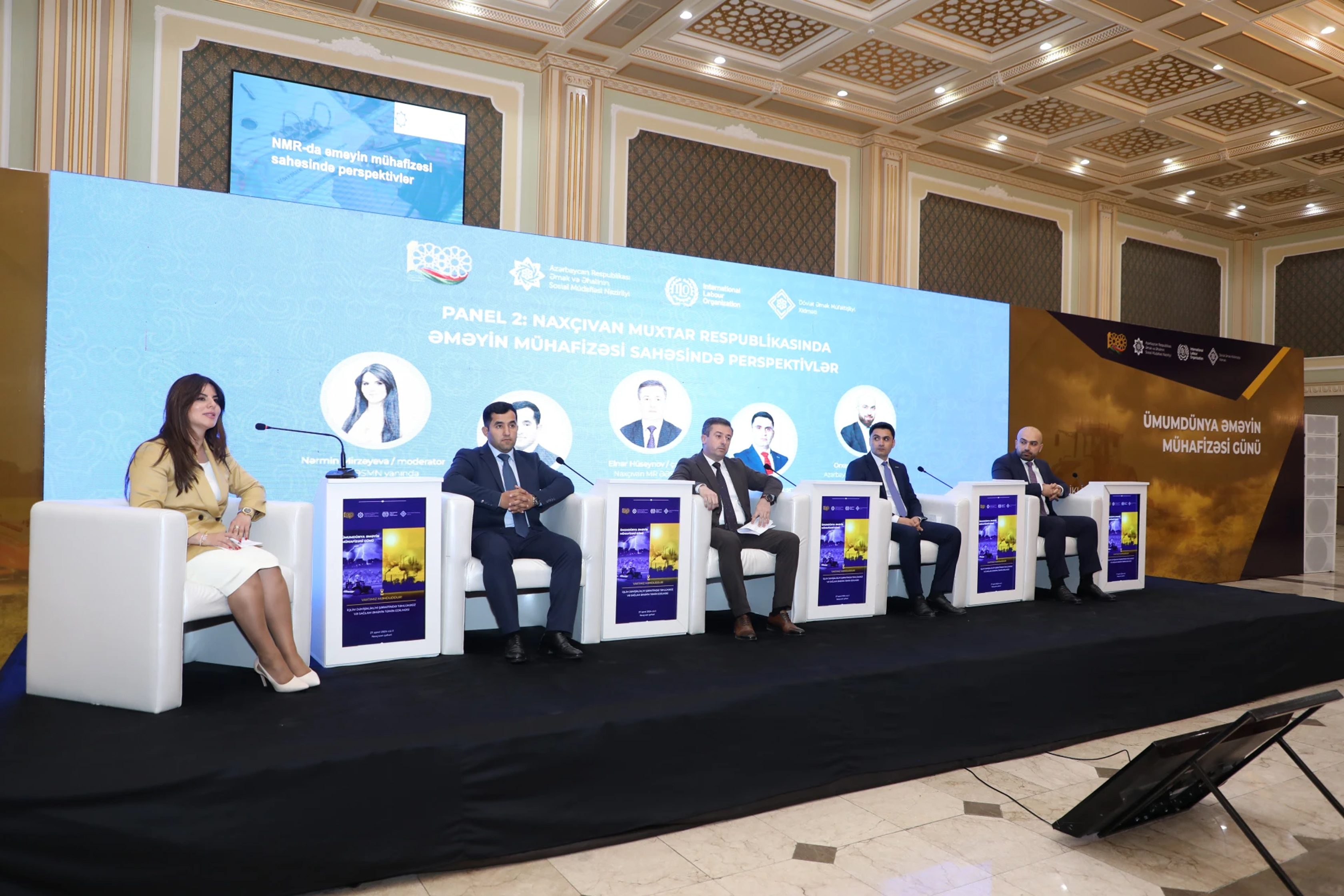 “İqlim dəyişikliyi fonunda əməyin mühafizəsi şəraitinin təmin edilməsində mövcud çağırışlar” və “Naxçıvan MR-də əməyin mühafizəsi sahəsində perspektivlər” mövzularında panel müzakirələr aparılıb.