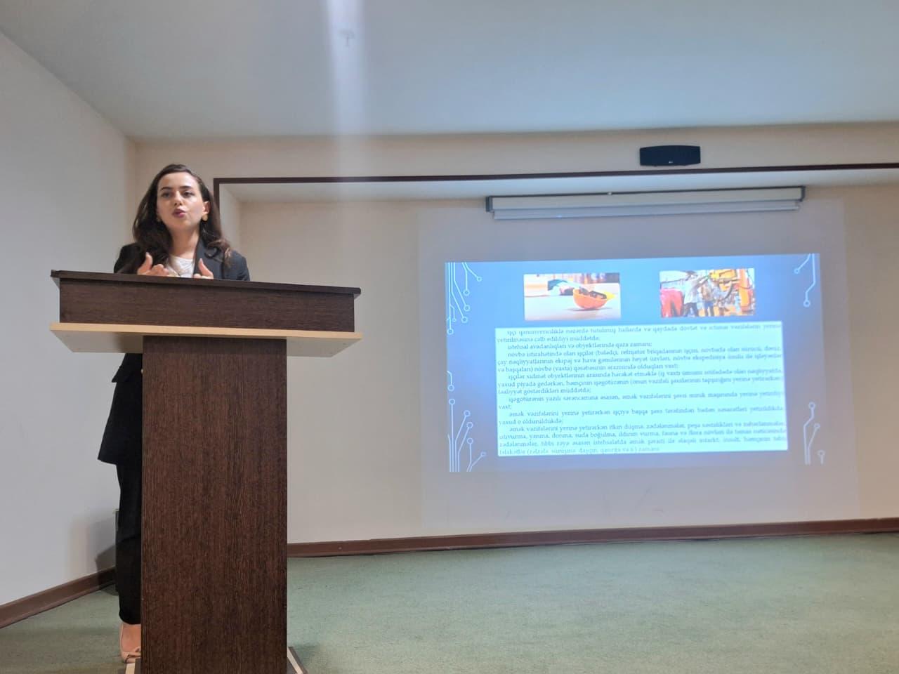 Təlimdə “İş yerlərində əməyin mühafizəsi, texniki təhlükəsizlik, iş yerlərinin attestasiyası və işçilərin bədbəxt hadisələrdən icbari sığortası” mövzusunda danışılıb.