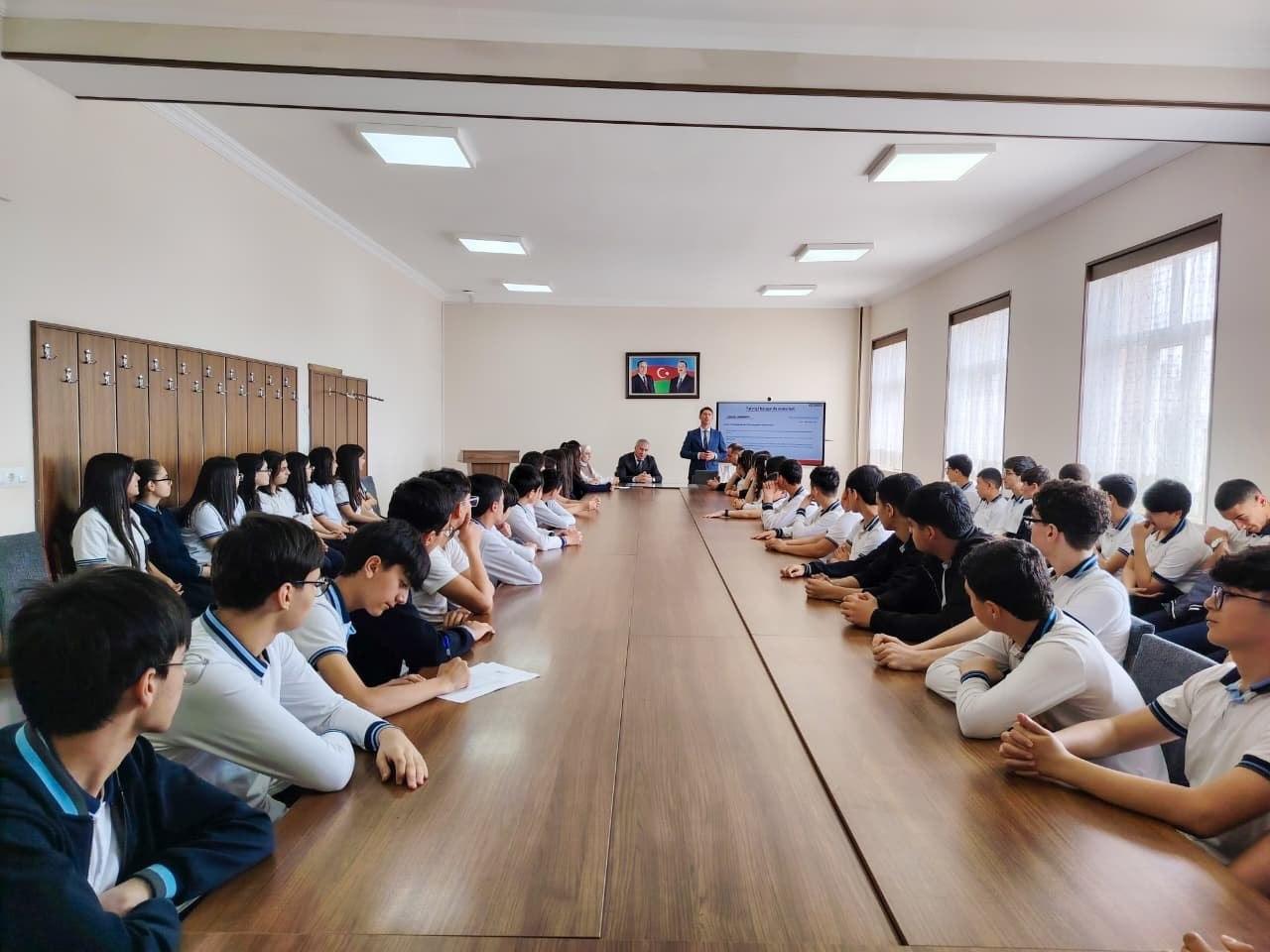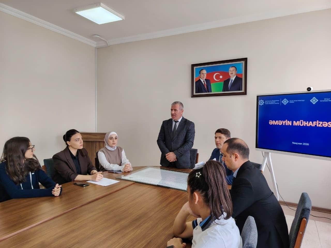 Naxçıvan şəhəri H. Cavid adına 5 nömrəli tam orta məktəbdə “Əməyin mühafizəsinə dair ümumi tələblər, istehsalatda baş verən bədbəxt hadisələr, yanğın təhlükəsizliyi və ilk yardım qaydaları” mövzusunda növbəti maarifləndirmə təlimi təşkil olunub.
