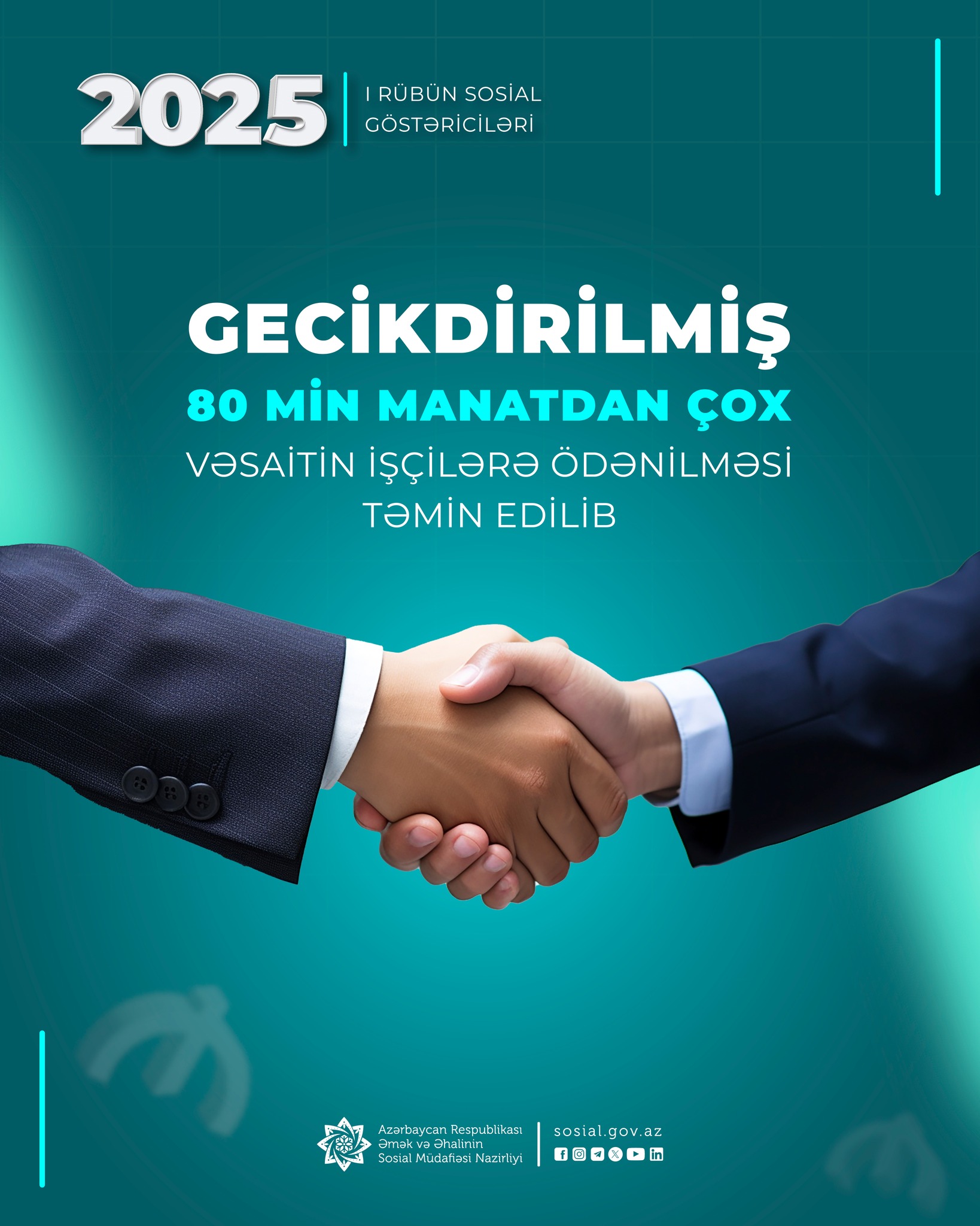 Əmək və Əhalinin Sosial Müdafiəsi Nazirliyi yanında Dövlət Əmək Müfəttişliyi Xidməti 2025-ci ilin birinci rübü ərzində vətəndaş müraciətlərini araşdırarkən işəgötürənlər tərəfindən sosial xarakterli ödənişlər olan 80 min manatdan çox vəsaitin işçilərə ödənilməsinin gecikdirildiyi müəyyən olunub.