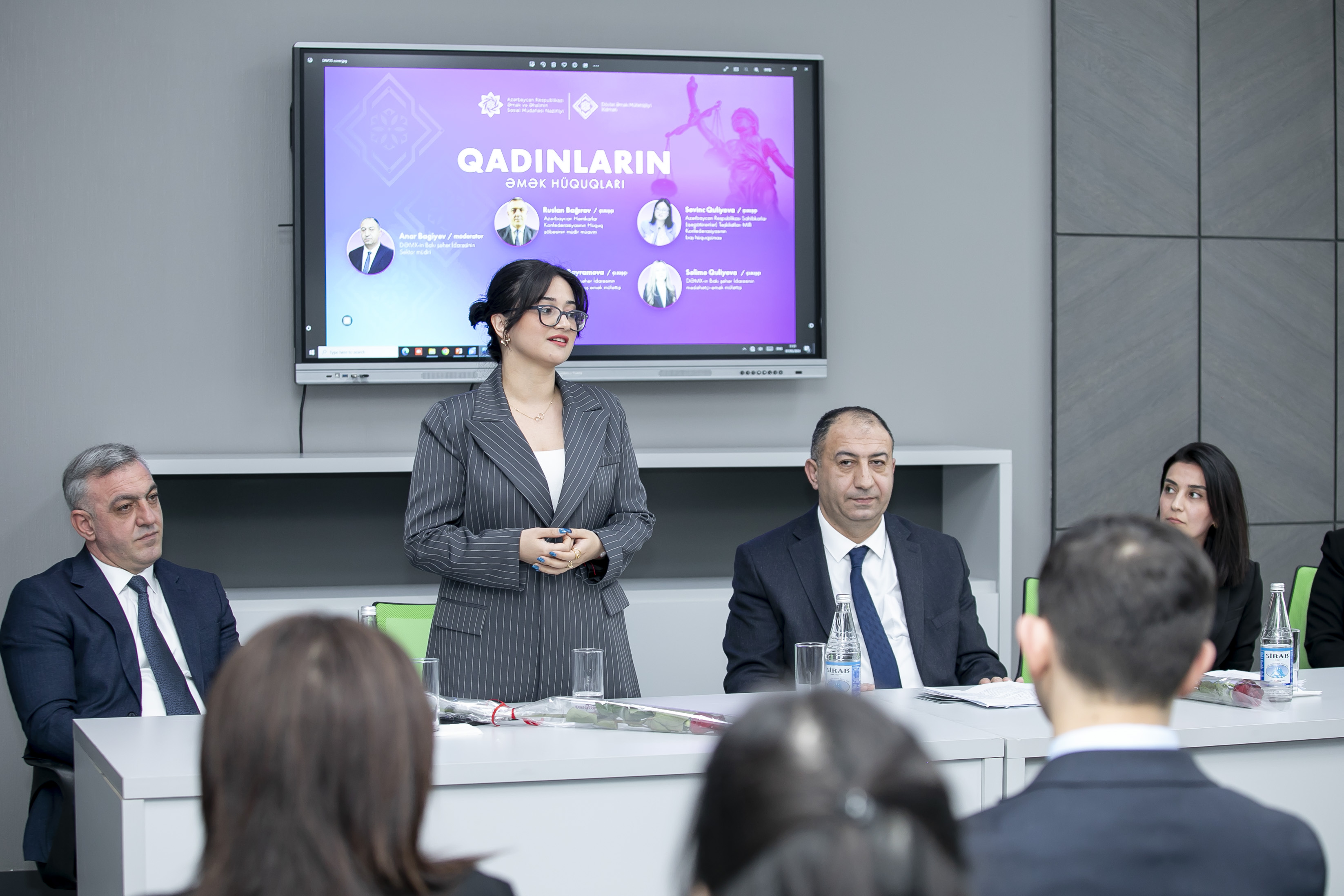 İştirakçılara qadınların əmək hüquqları həmçinin Azərbaycan Respublikasının Əmək Məcəlləsində və əmək qanunvericiliyinə dair digər normativ hüquqi aktlarda müəyyən olunan güzəştlər, imtiyazlar və əlavə təminatlar haqqında ətraflı məlumat verilib.