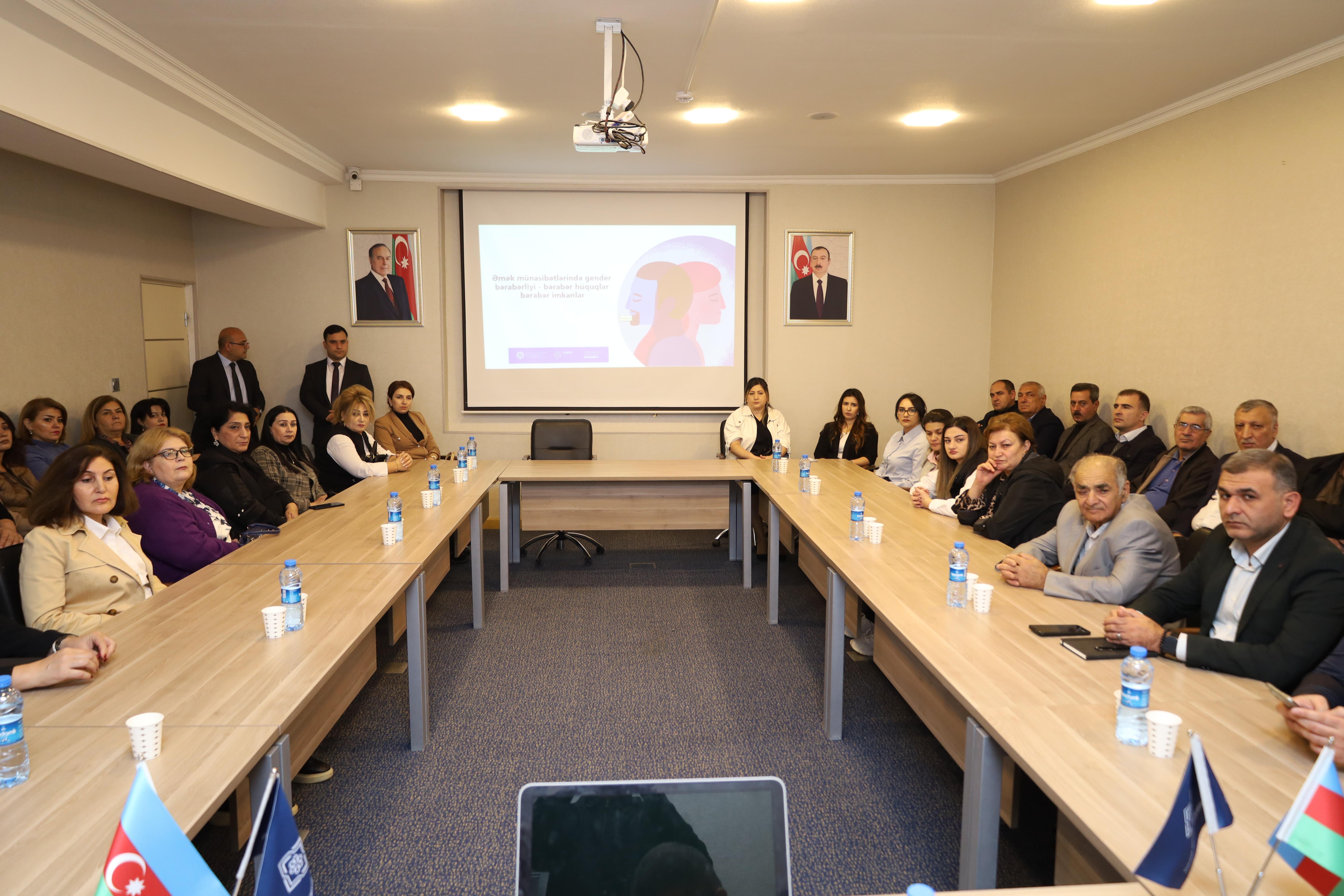 Maarifləndirici tədbir “Əmək və məşğulluq” (ƏMAS) altsistemində aparılmış təhlillər əsasında iqtisadi fəaliyyət növləri üzrə qadınların nisbətən az təmsil olunduğu müəssisələrdə çalışan işəgötürənlərin iştirakı ilə keçirilib.