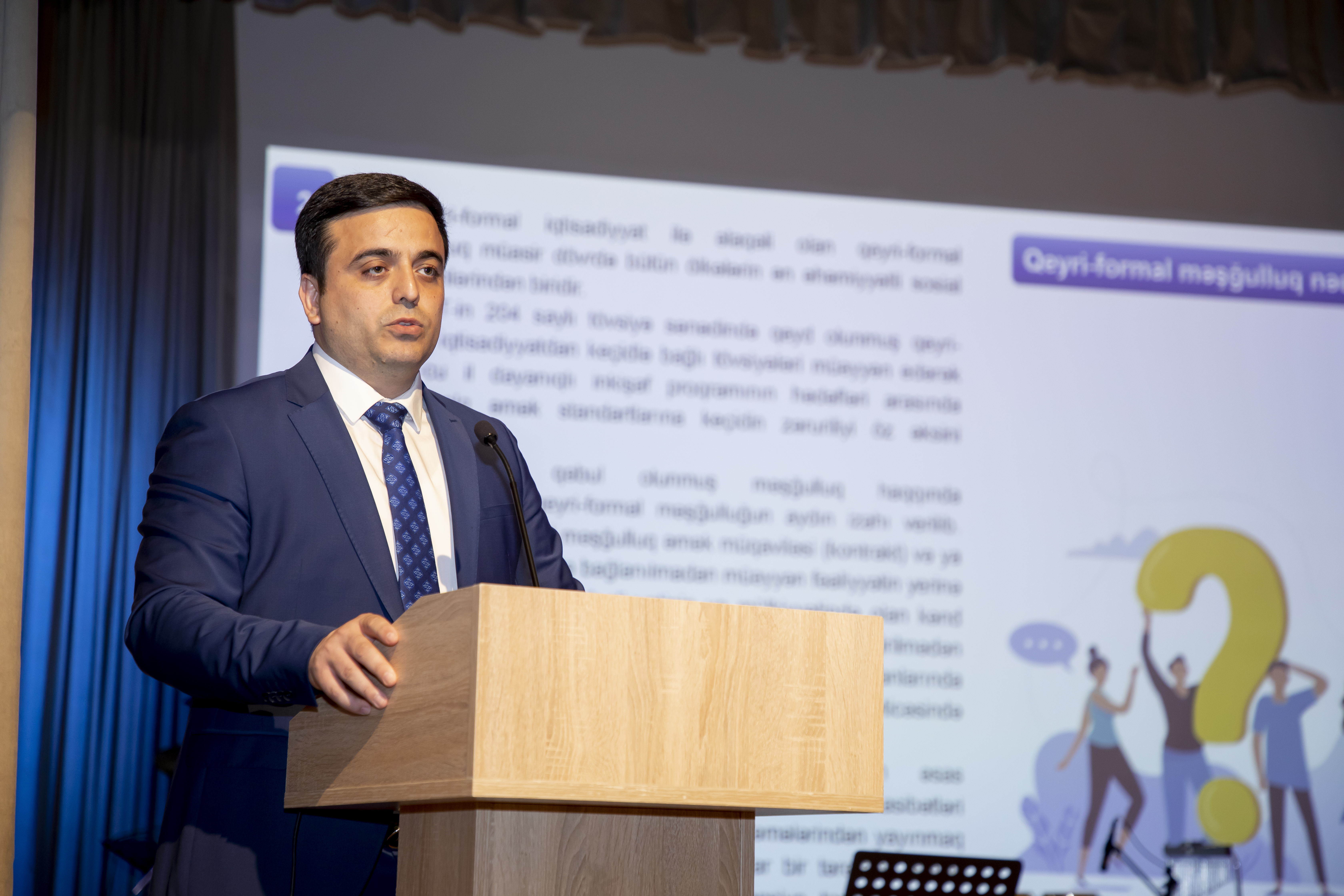 Açılış nitqi ilə çıxış edən Dövlət Əmək Müfəttişliyi Xidmətinin Bakı Şəhər İdarəsinin rəisi Rüfət Əliyev bildirib ki, qeyri-rəsmi məşğulluq əmək ehtiyatlarından səmərəli istifadə olunmasına, layiqli əməyin dəstəklənməsinə, işəgötürənlərin də iqtisadi mənafelərinə, müəssisədə əmək məhsuldarlığına, keyfiyyətli istehsal və xidmət prosesinə ciddi zərər vurur.
