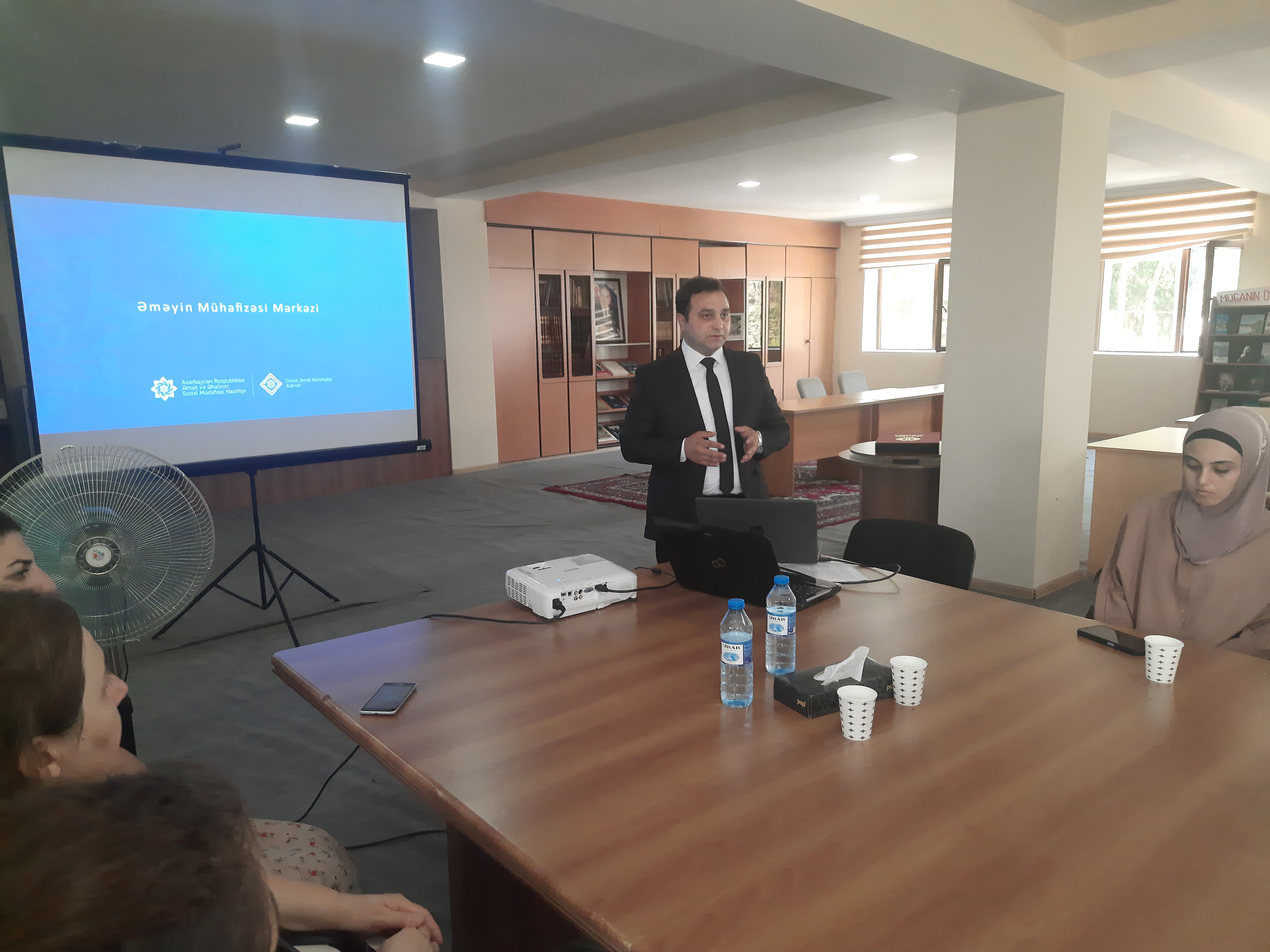“Əməyin Mühafizəsi Mərkəzi” publik hüquqi şəxsin (Mərkəz) əməkdaşı da öz növbəsində sahə üzrə qanunvericiliyin tələblərini qonaqların diqqətinə çatdırmaqla yanaşı qurum haqqında ətraflı məlumat verərək bildirib ki, Mərkəz əmək hüquqları, əməyin mühafizəsi və təhlükəsizliyi sahəsində məsləhət xidmətləri göstərməklə, əməyin mühafizəsi üzrə standard, norma və qaydaların müəssisələrdə tətbiqinə mühüm dəstək göstərir.