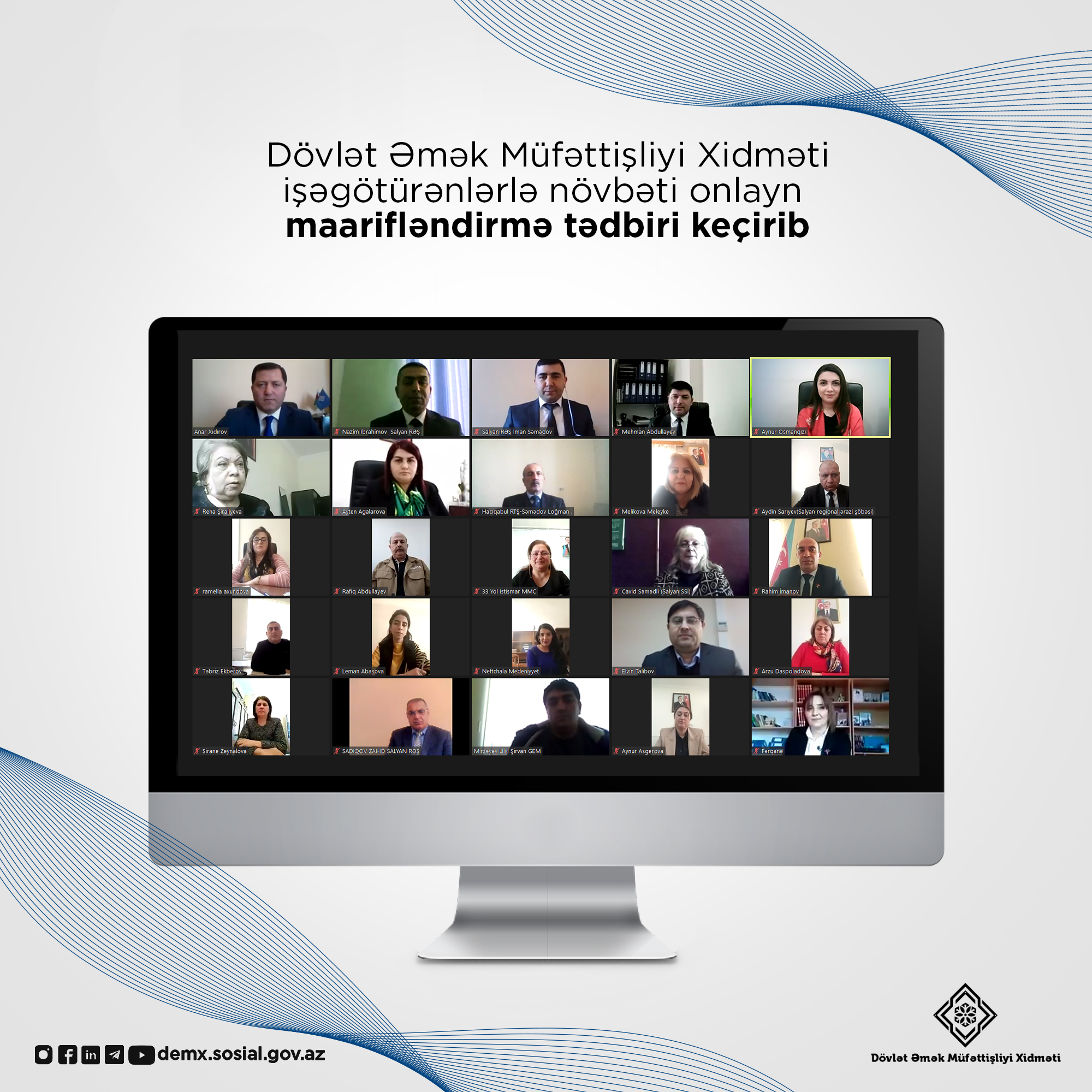 Əmək və Əhalinin Sosial Müdafiəsi Nazirliyi yanında Dövlət Əmək Müfəttişliyi Xidməti işəgötürənlər üçün "İş vaxtının növləri, iş vaxtının rejimi və iş vaxtından artıq vaxtda işin tənzimlənməsi qaydaları" mövzusunda növbəti maarifləndirici onlayn tədbir keçirib.