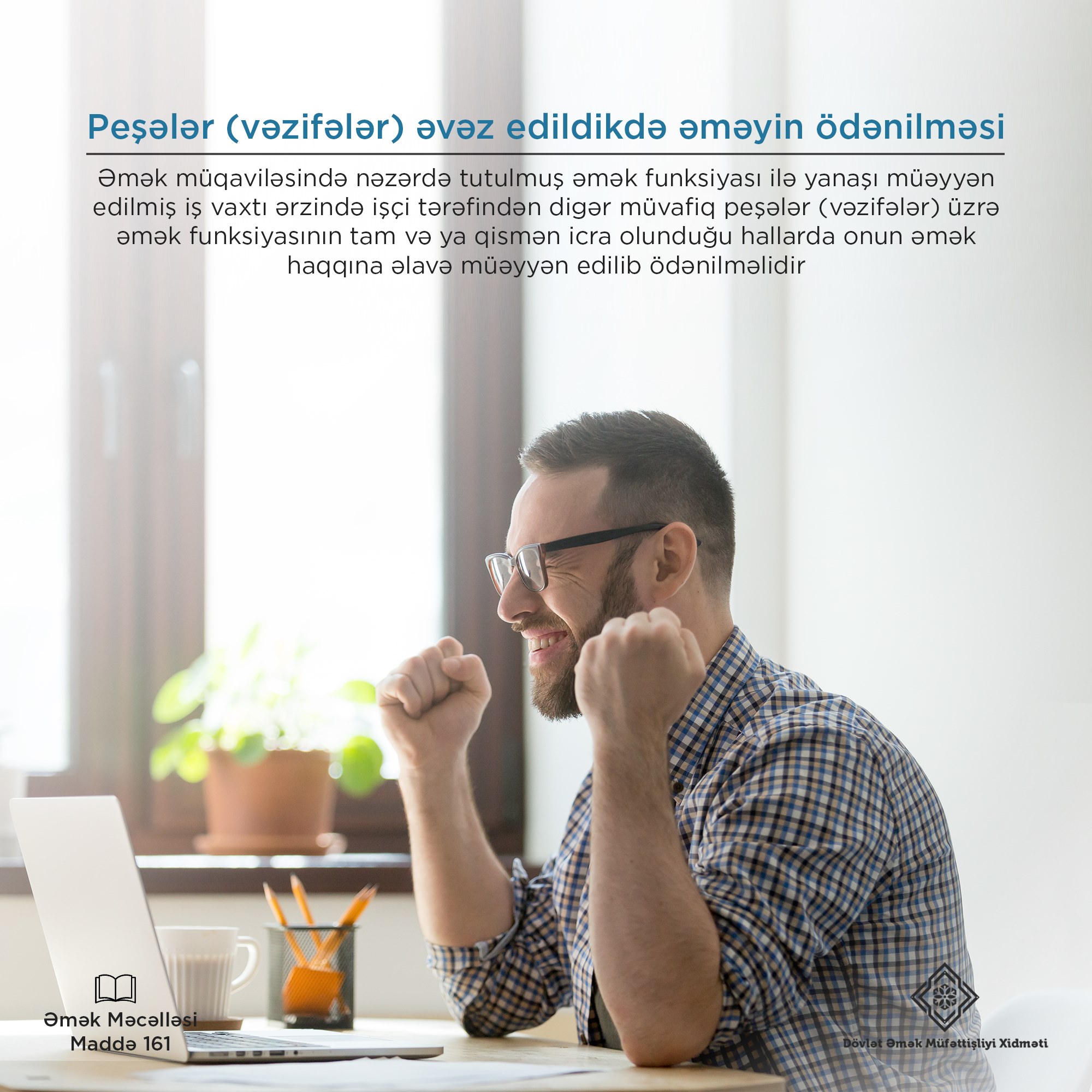 Azərbaycan Respublikası Əmək Məcələsinin 161-ci maddəsinə əsasən peşələr (vəzifələr) əvəz edildikdə əməyin ödənilməsi aşağıdakı kimi müəyyən edilib: