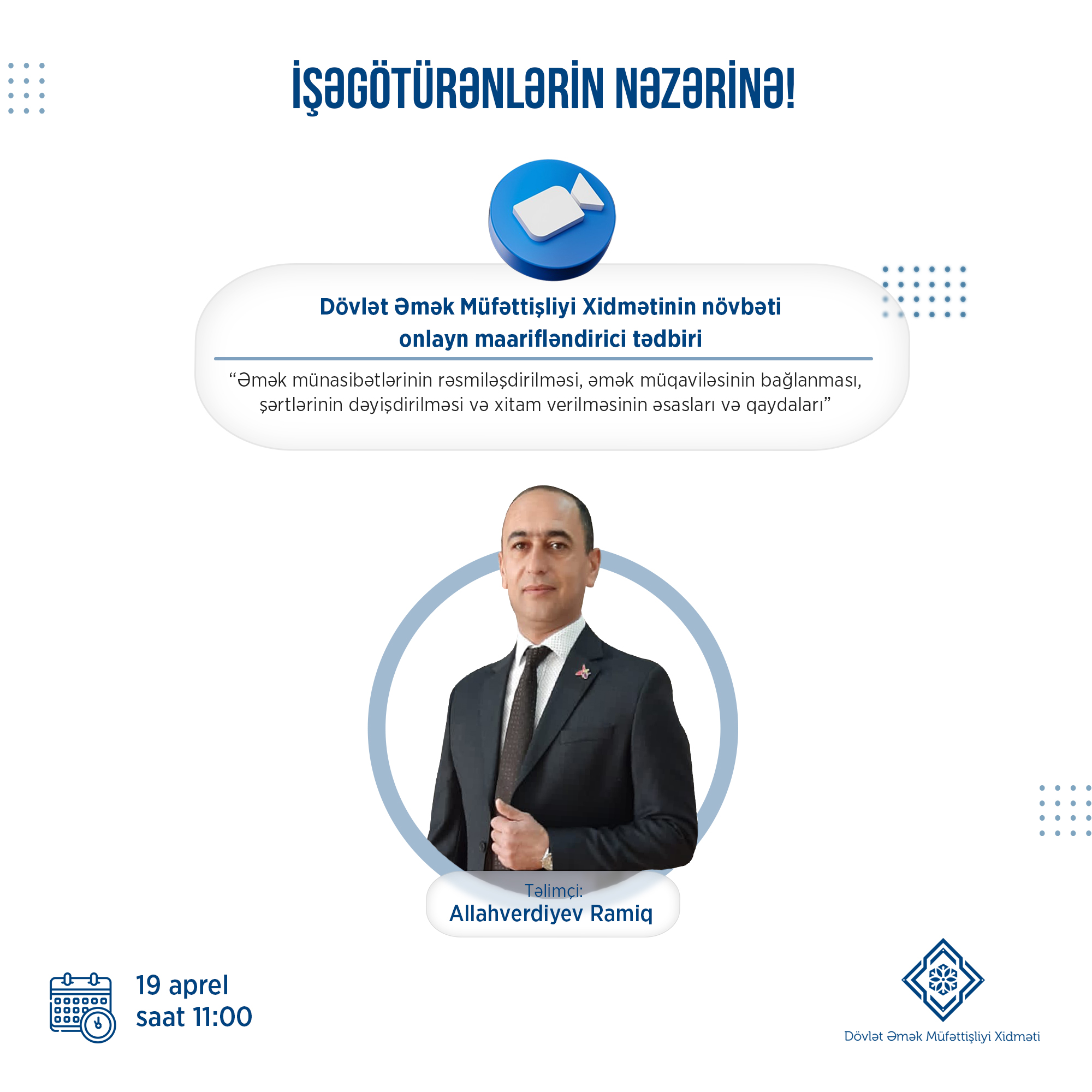 "Əmək münasibətlərinin rəsmiləşdirilməsi, əmək müqaviləsinin bağlanması, şərtlərinin dəyişdirilməsi və xitam verilməsinin əsasları və qaydaları" mövzusunda tədbir