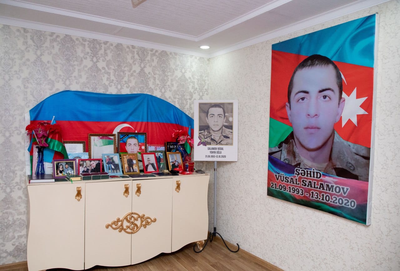 Dövlət Əmək Müfəttişliyi Xidmətinin rəhbər heyəti 44 günlük Vətən müharibəsində Suqovuşan uğrunda gedən döyüşlərdə şəhid olmuş Salamov Vüsal Yəhya oğlunun ailəsini ziyarət edib