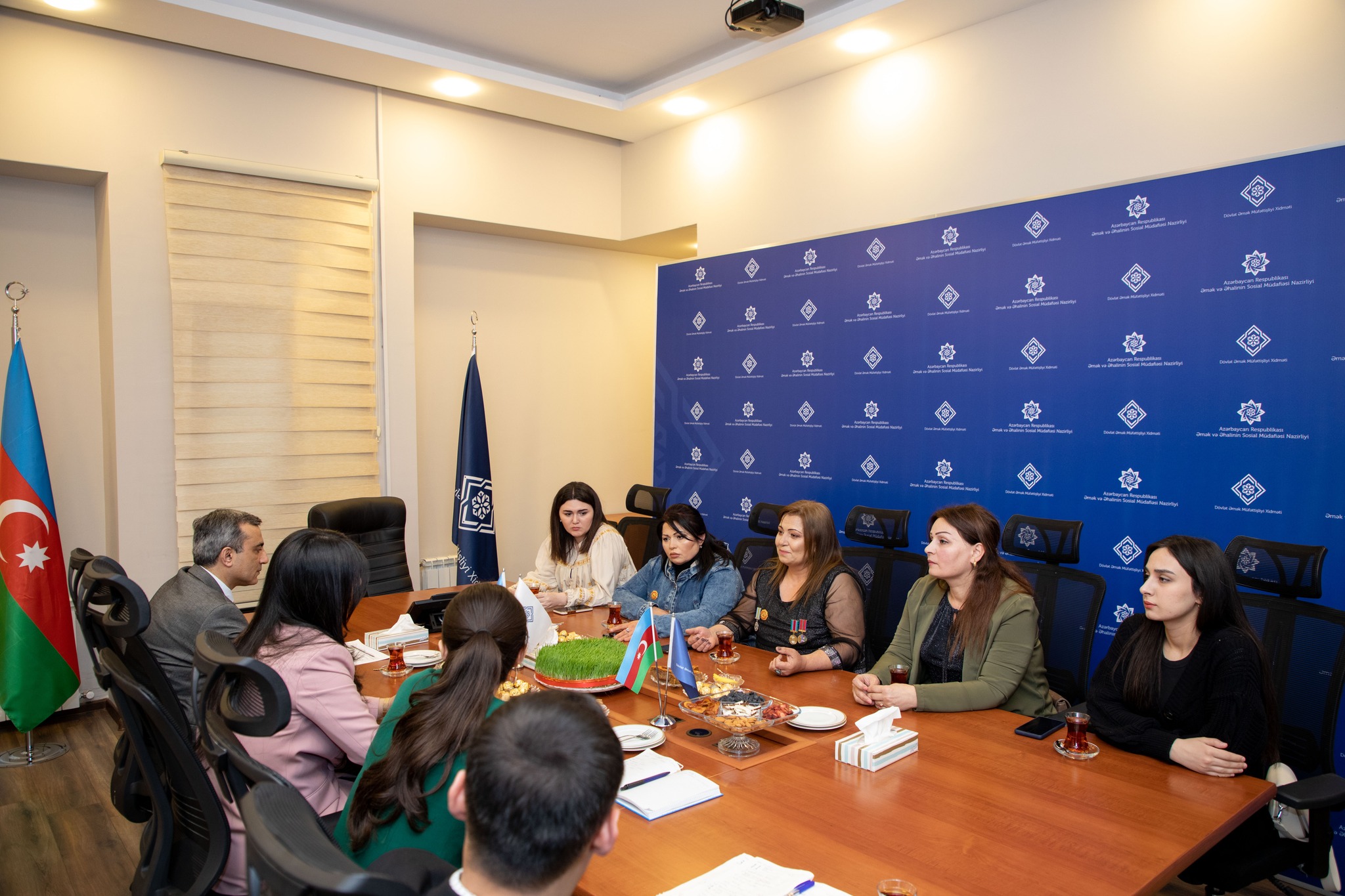 Əmək və Əhalinin Sosial Müdafiəsi Nazirliyi yanında Dövlət Əmək Müfəttişliyi Xidmətində Vətən müharibəsi iştirakçıları olan xanımlarla görüş keçirilib