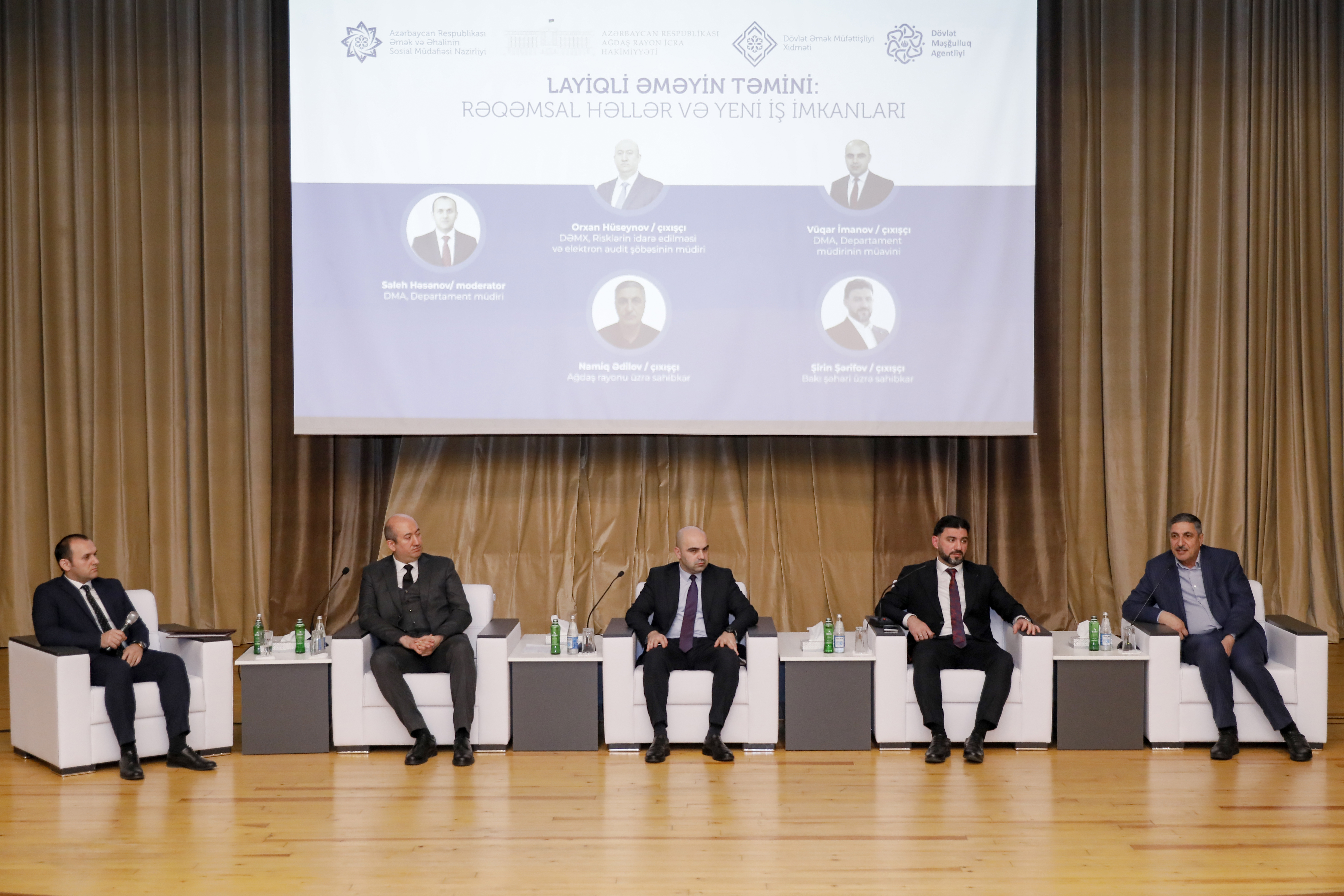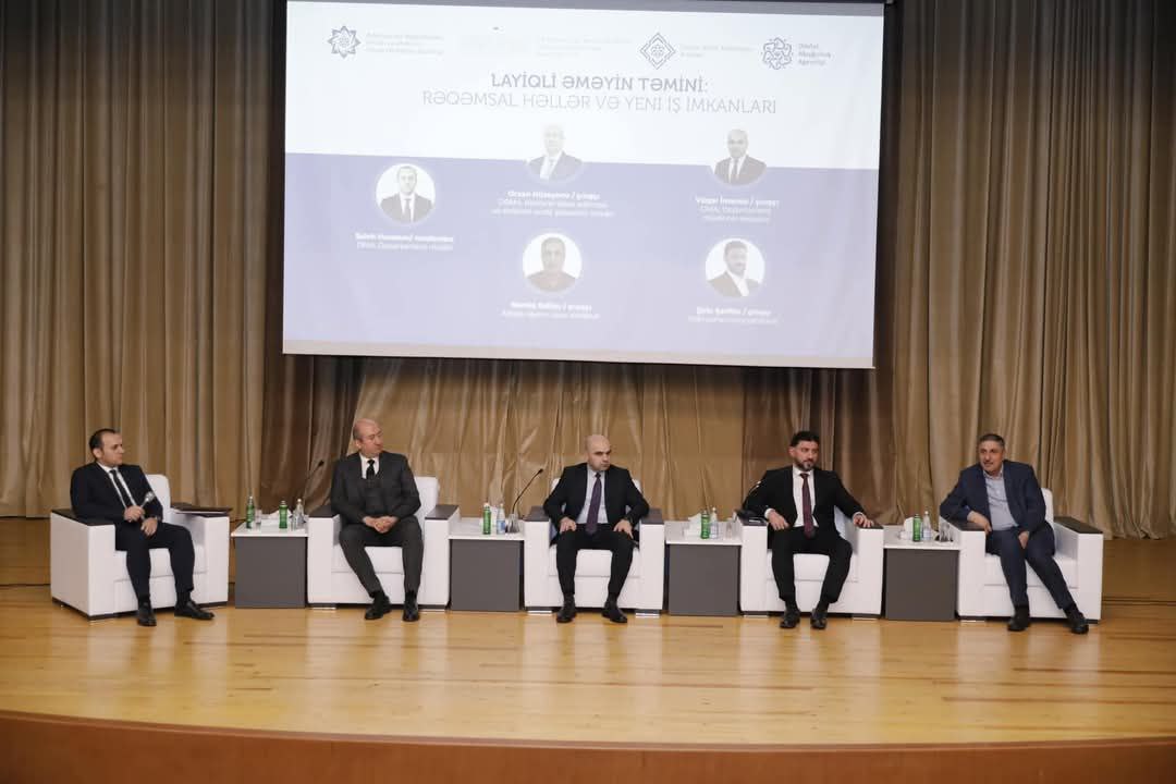 Konfransın ikinci paneli “Layiqli əməyin təmini: rəqəmsal həllər və yeni iş imkanları” mövzusunda olub. İlk olaraq Dövlət Əmək Müfəttişliyi Xidməti və Dövlət Məşğulluq Agentliyinin fəaliyyəti ilə bağlı təqdimatlar edilib, daha sonra suallar cavablandırılıb.