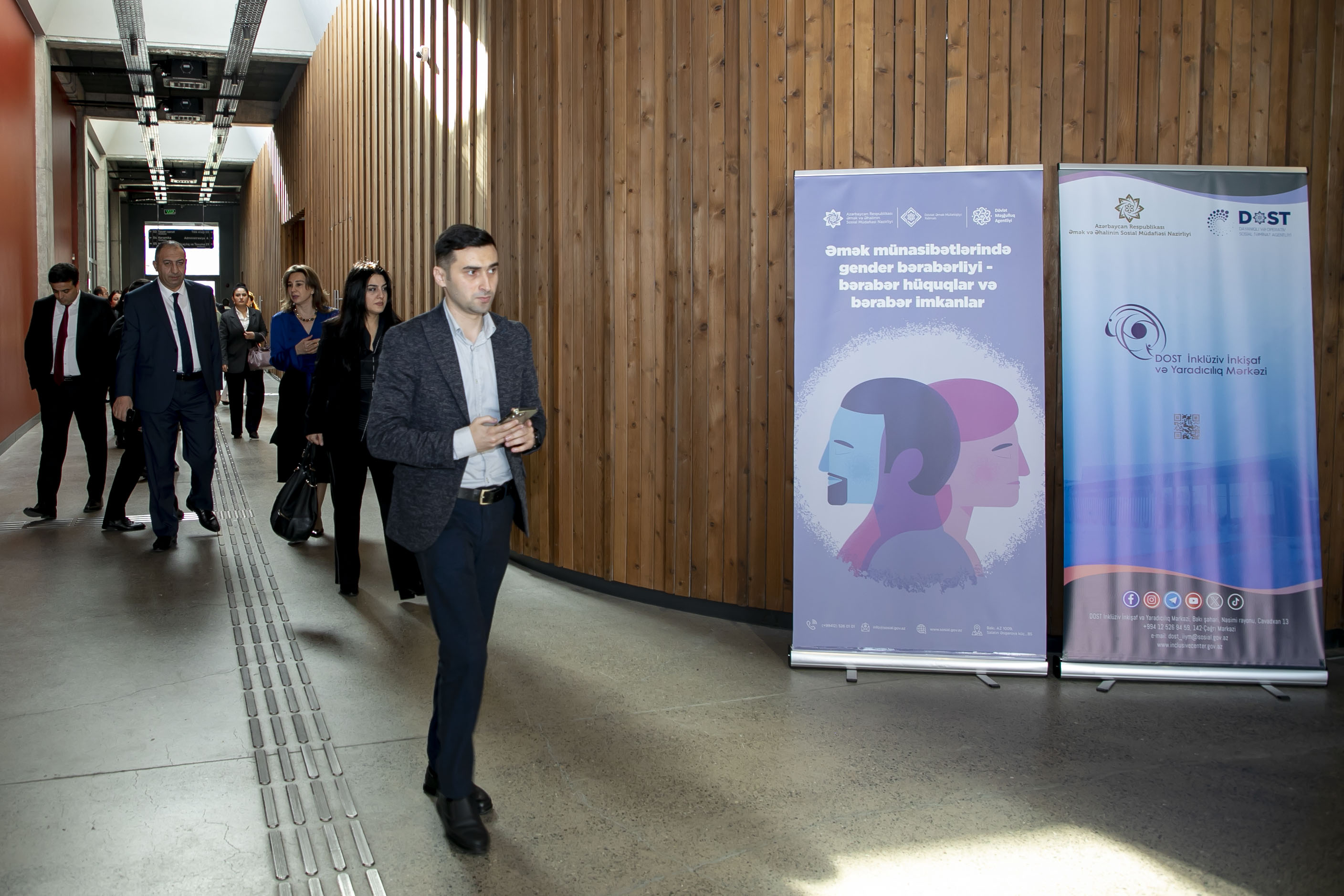 DOST İnklüziv İnkişaf və Yaradıcılıq Mərkəzinin inzibati binasında keçirilən tədbirdə aidiyyəti dövlət qurumlarının və müxtəlif sahələrdə fəaliyyət göstərən işəgötürənlərin nümayəndələri iştirak edib.