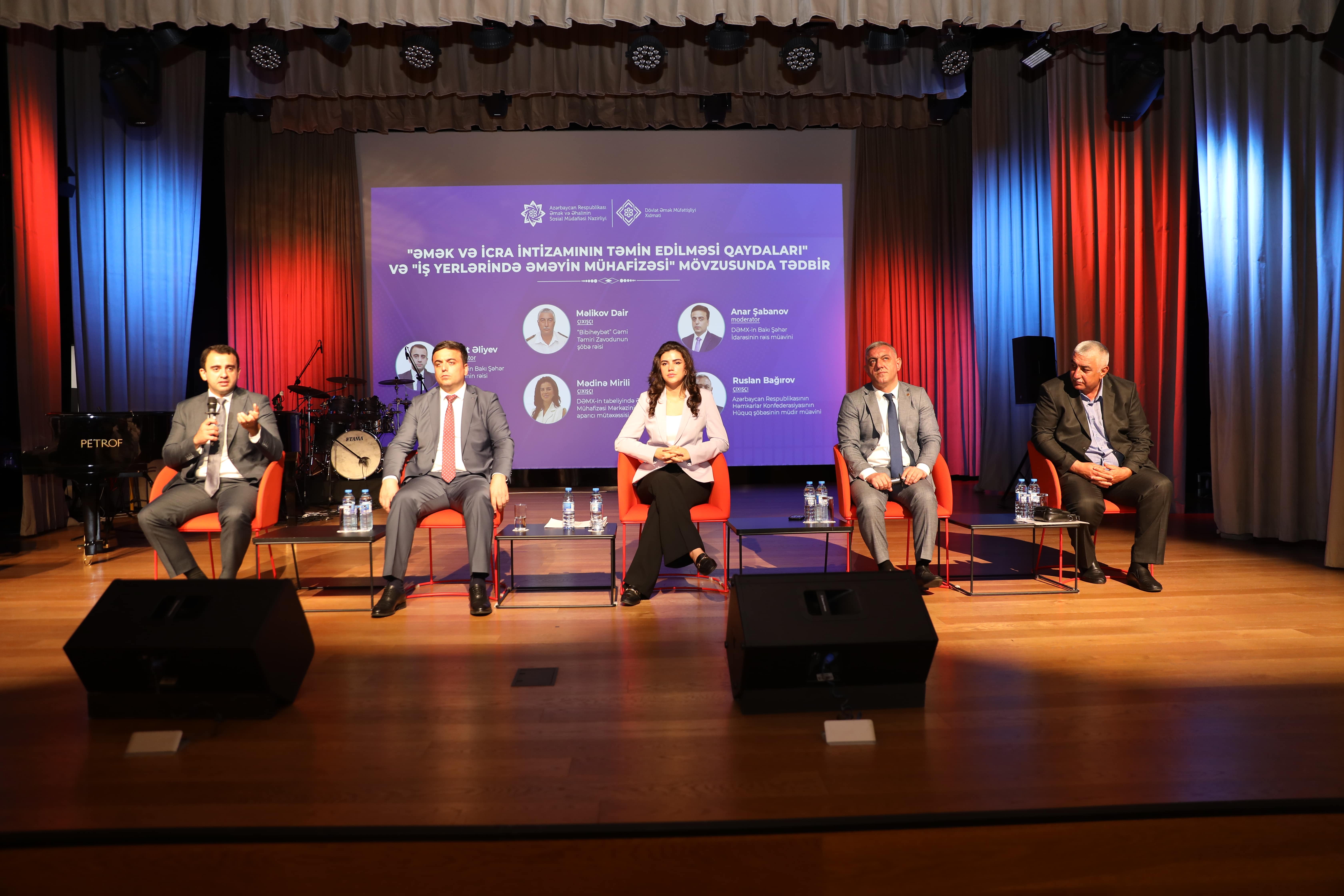 Tədbirdə çıxış edən Dövlət Əmək Müfəttişliyi Xidmətinin Bakı Şəhər İdarəsinin rəisi Rüfət Əliyev İnzibati Xətalar Məcəlləsinə edilən son dəyişikliklər barədə məlumat verib, iş yerlərində əməyin mühafizəsinin prioritet məsələlərdən olduğunu, bu istiqamətdə davamlı nəzarət, təlimlər və qabaqlayıcı tədbirlərin önəmli olduğunu qeyd edib.