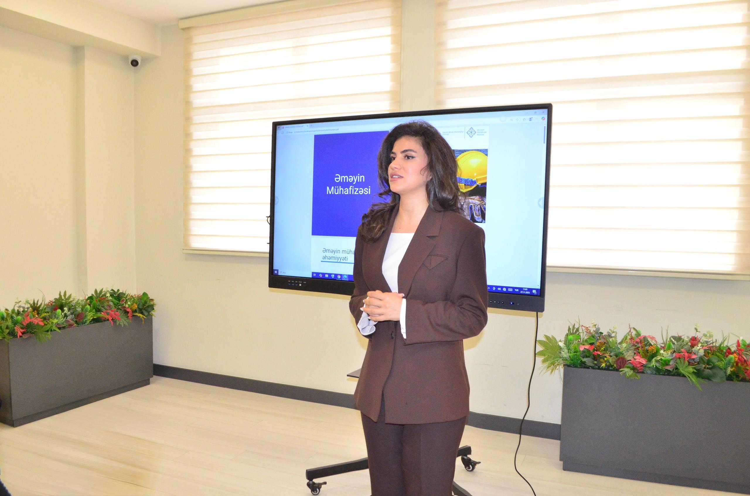 Bundan əlavə, Əməyin Mühafizəsi Mərkəzinin fəaliyyət istiqamətləri və əməyin mühafizəsi sahəsində görülən işlər barədə məlumat verilib. Müəssisələrdə əməyin mühafizəsi üzrə standart, norma və qaydaların tətbiqinə göstərilən dəstək qeyd olunub, həmçinin yeni qəbul edilmiş standartlarla bağlı iştirakçılar məlumatlandırılıb.