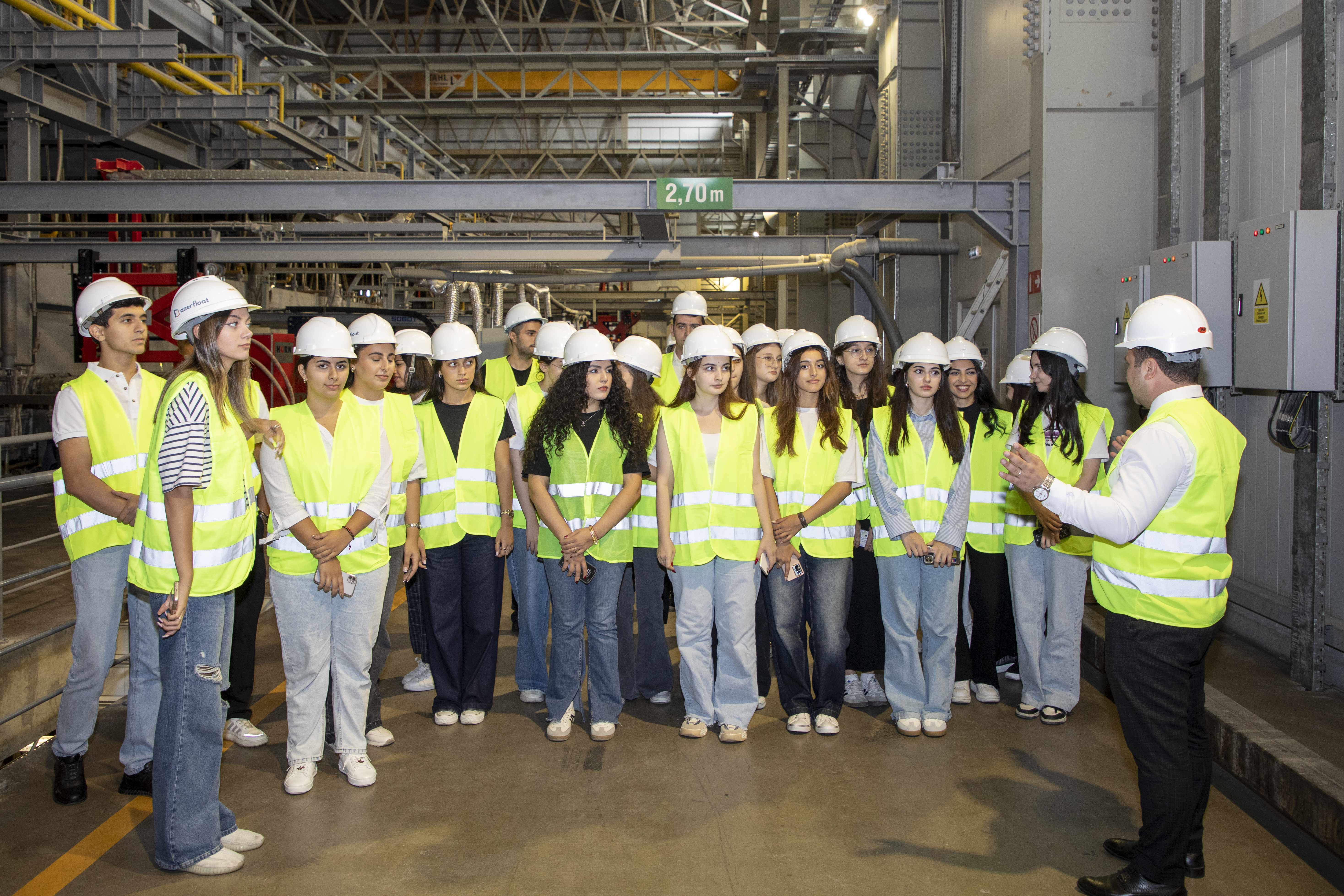 Müəssisədə təhlükəsizlik qaydaları ilə bağlı təlimatla tanış olduqdan sonra istehsalat barədə ətraflı məlumat alan könüllülər prosesi yaxından izləmək üçün real iş şəraiti ilə yaxından tanış olublar.