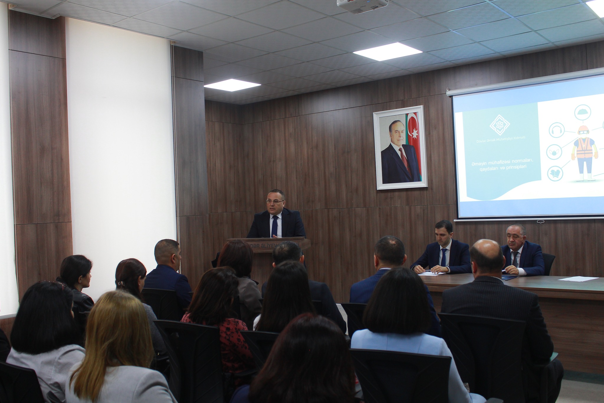 Eyni zamanda, iqlim dəyişikliyi fonunda əməyin mühafizəsi şəraitinin təmin edilməsi, iş yerlərinin attestasiyası qaydaları və əmək qanunvericiliyində son dəyişikliklər diqqətə çatdırılıb. İştirakçılar əməyin təhlükəsizliyi sahəsində işəgötürənlərə fəal metodiki dəstək məqsədinə xidmət edən Əməyin Mühafizəsi Mərkəzinin fəaliyyəti barədə də ətraflı məlumatlandırılıb.
