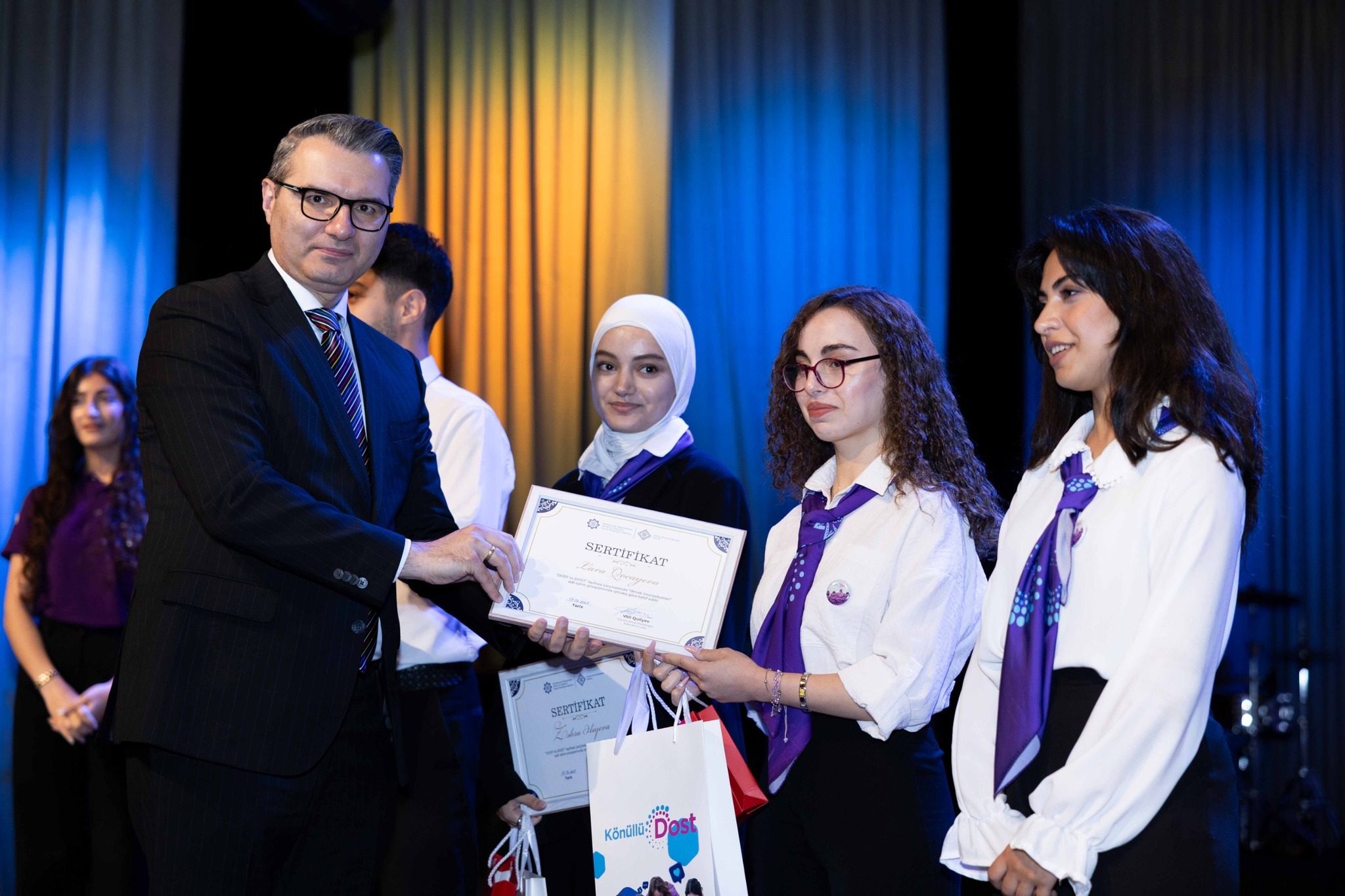 DOST İnklüziv İnkişaf və Yaradıcılıq Mərkəzinin benefisiarlarının təqdim etdiyi musiqi nömrələrindən sonra könüllü gənclərdən biri təlim proqramında iştirakı ilə bağlı təəssüratlarını bölüşüb.