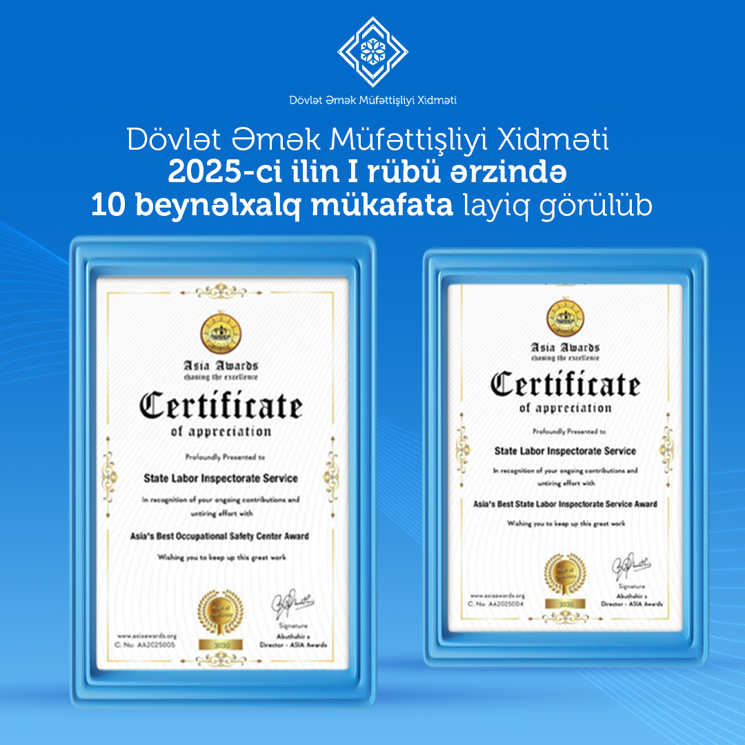 Əmək və Əhalinin Sosial Müdafiəsi Nazirliyi yanında Dövlət Əmək Müfəttişliyi Xidmətinin 2025-ci ilin I rübü ərzindəki fəaliyyəti beynəlxalq səviyyədə yüksək qiymətləndirilib.