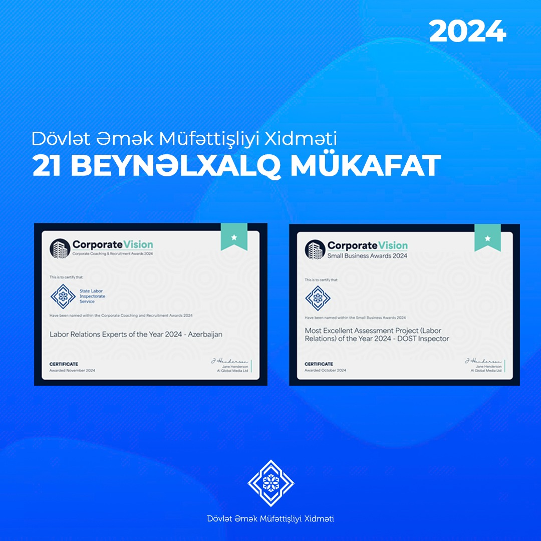Əmək və Əhalinin Sosial Müdafiəsi Nazirliyi yanında Dövlət Əmək Müfəttişliyi Xidmətinin 2024-cü il ərzindəki fəaliyyəti beynəlxalq səviyyədə yüksək qiymətləndirilib.