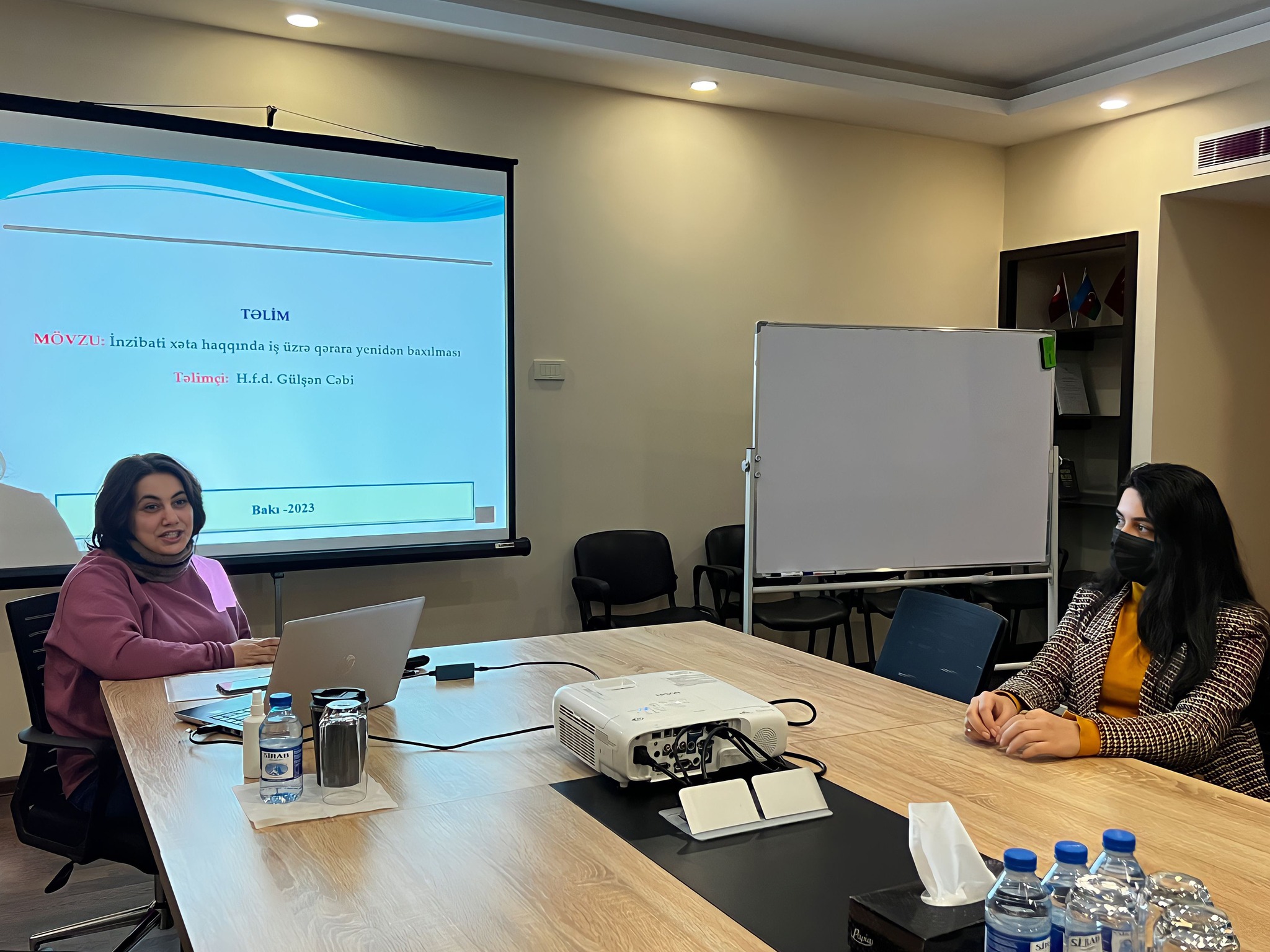 “İnzibati Xətalar Məcəlləsinin tətbiqi” və “Əmək qanunvericiliyinin tətbiqi” ilə bağlı bir aylıq növbəti təlim kursu başa çatıb. Təlimlərdə Xidmətin 40-a yaxın əməkdaşı iştirak edib.