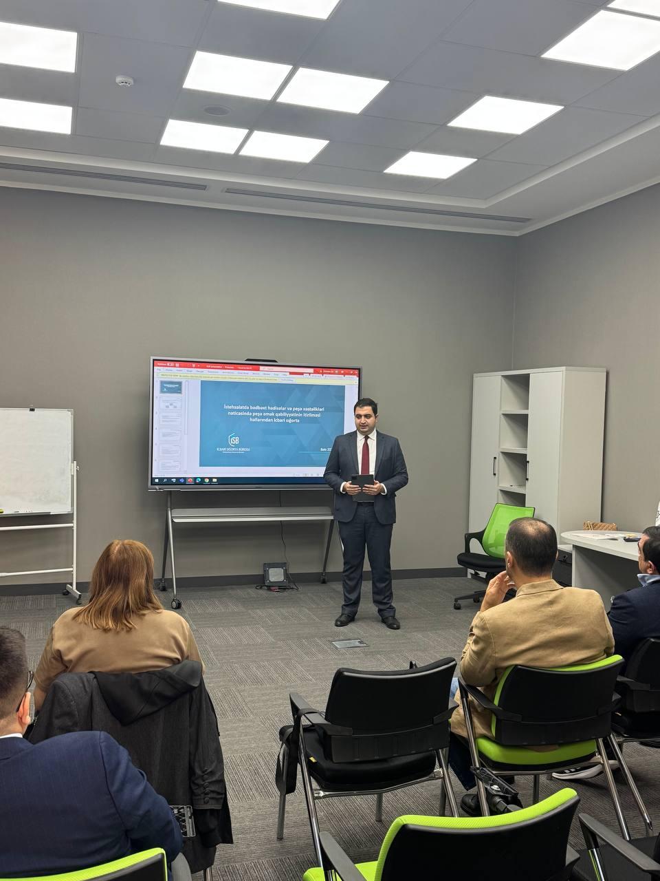 Əmək və Əhalinin Sosial Müdafiəsi Nazirliyi yanında Dövlət Əmək Müfəttişliyi Xidmətinin tabeliyindəki Əməyin Mühafizəsi Mərkəzi və İcbari Sığorta Bürosunun birgə əməkdaşlığı çərçivəsində əməyin mühafizəsi və təhlükəsiz əmək şəraitinin təmininə dair maarifləndirici təlimlər davam etdirilir.